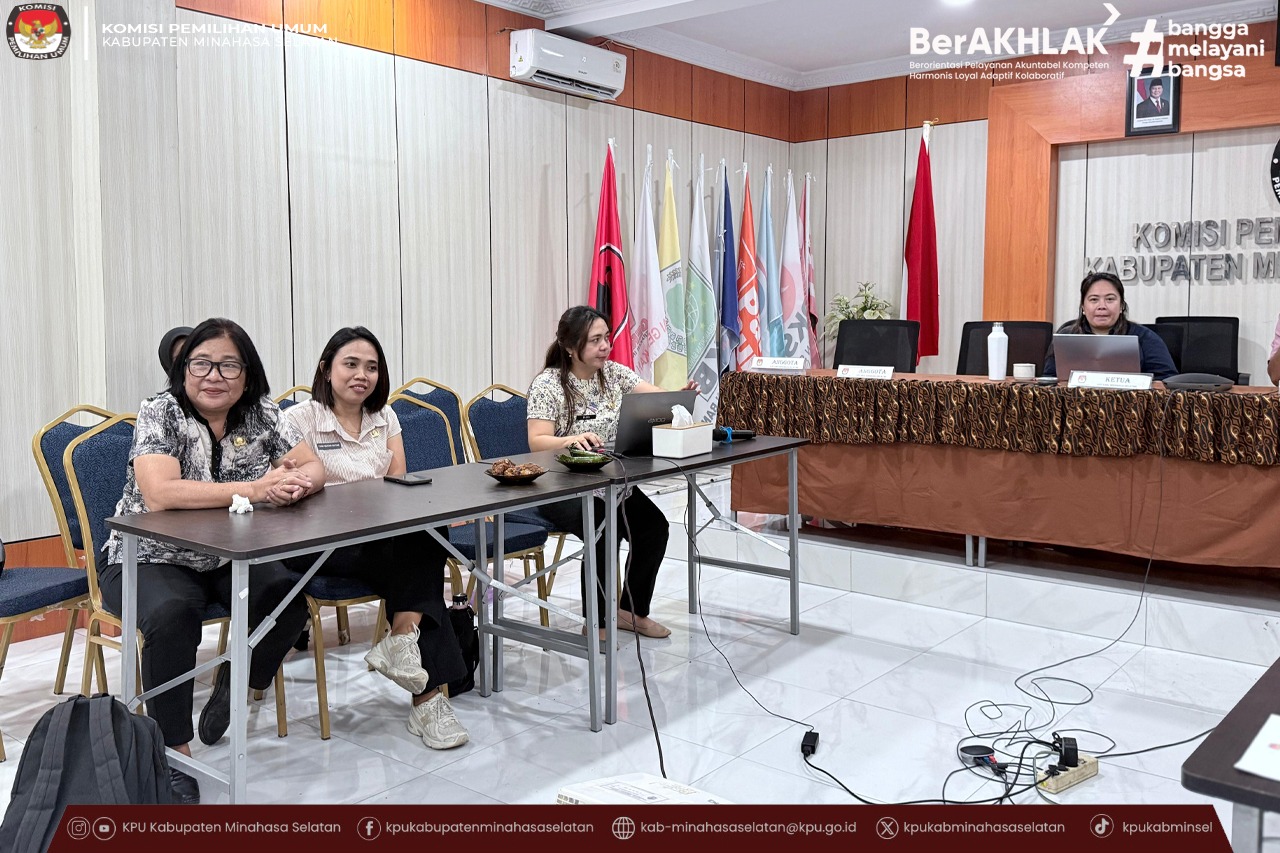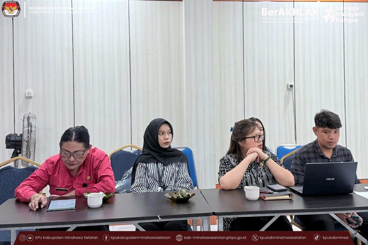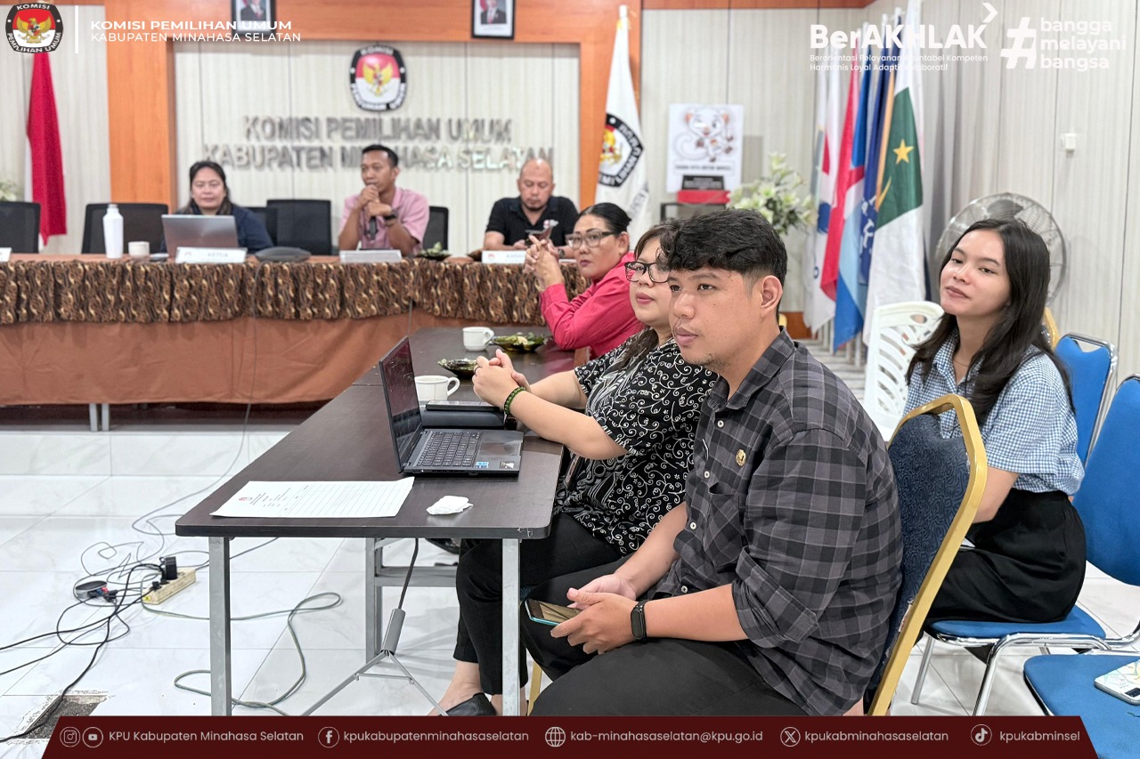 Peserta yang hadir antara lain Kasubbag Hukum dan SDM, Kasubbag Perencanaan, Data, dan Informasi, staf sekretariat KPU Minsel, serta siswa PKL yang sedang melaksanakan praktik kerja lapangan di KPU Minahasa Selatan.