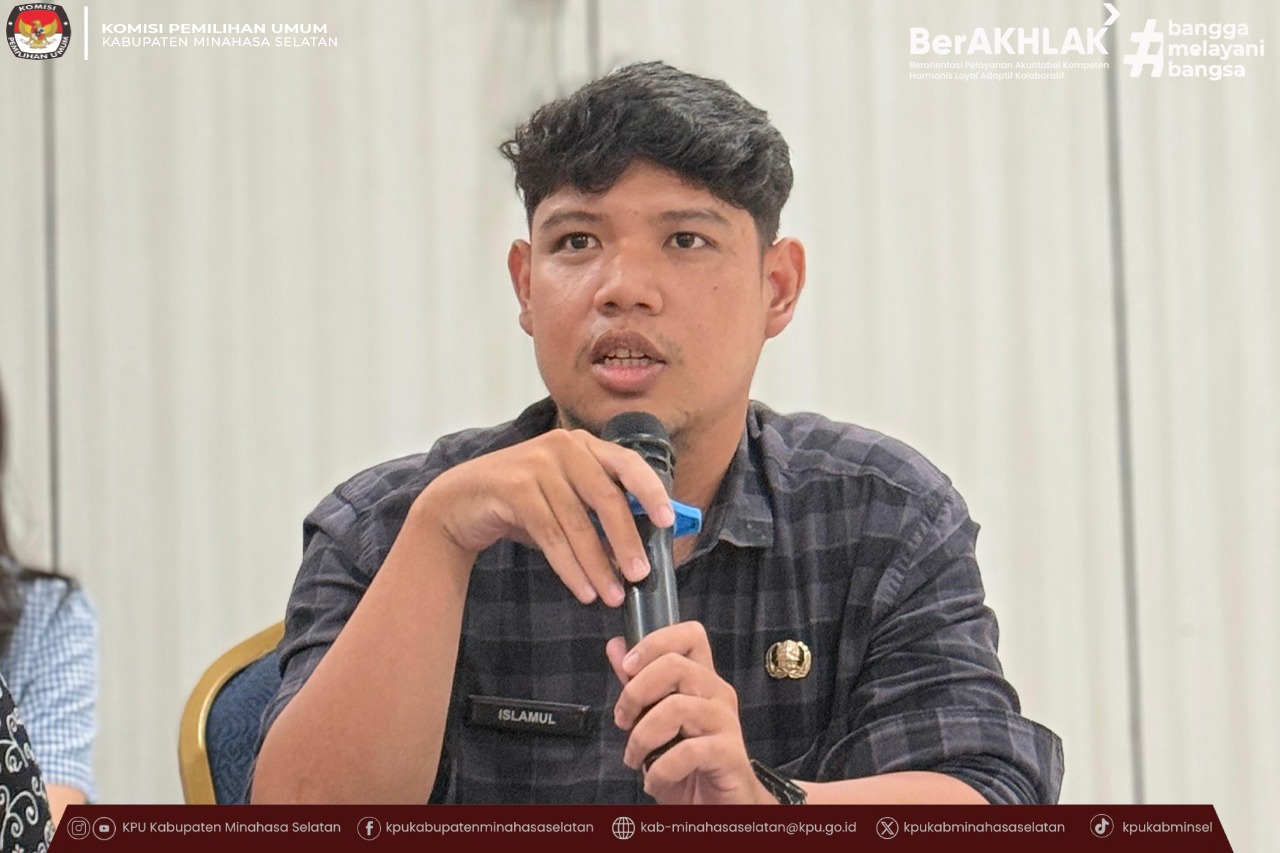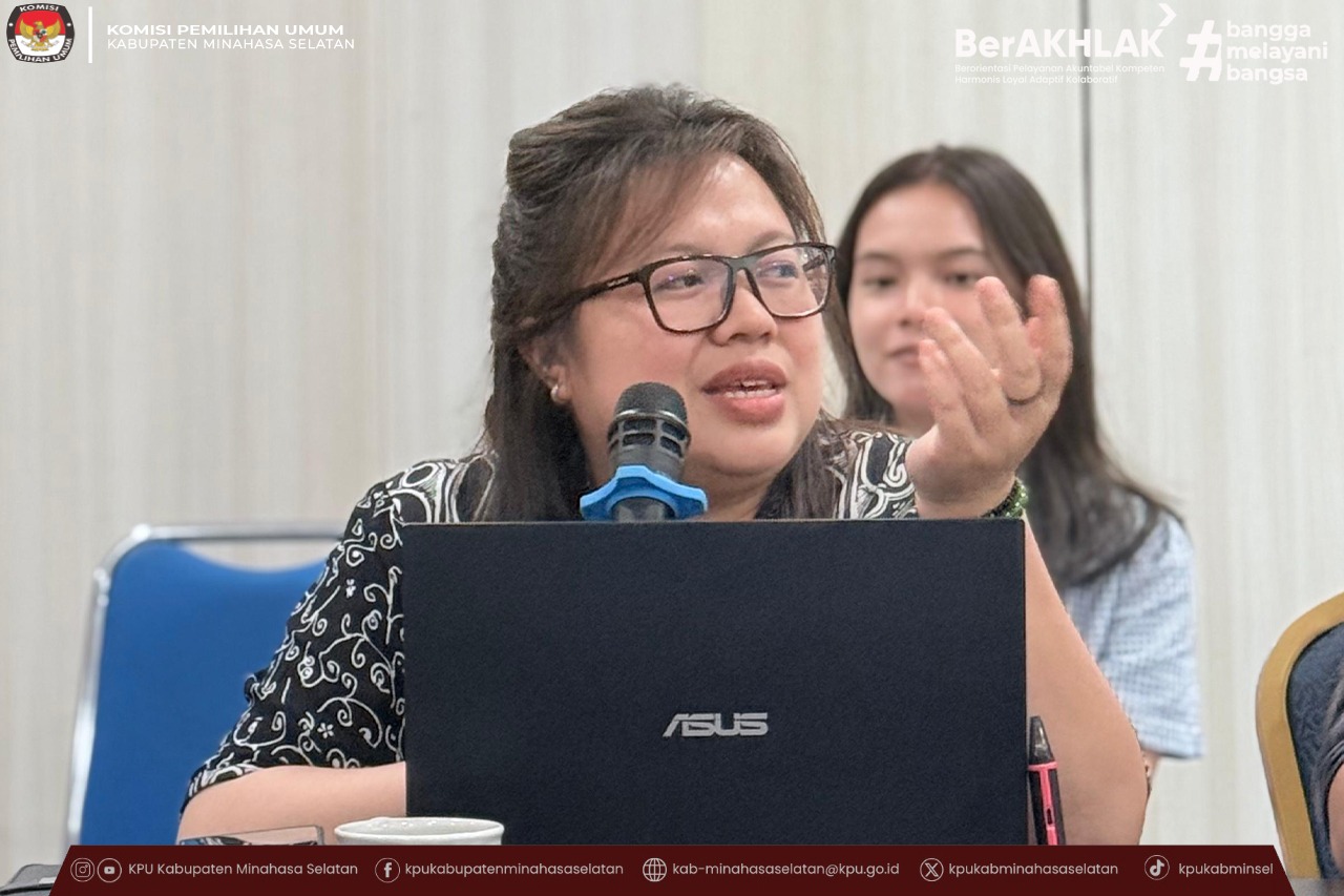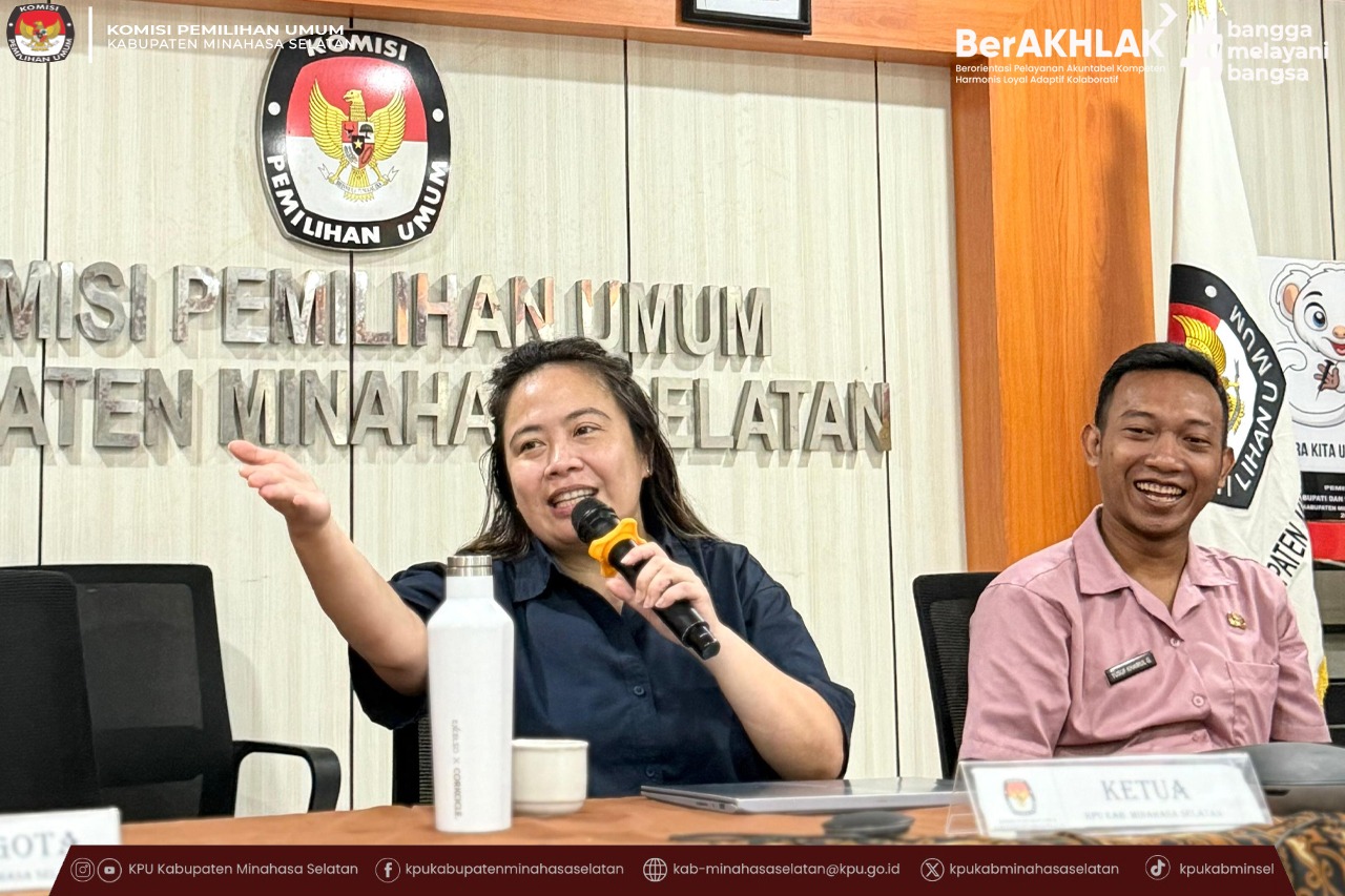 Peserta yang hadir antara lain Kasubbag Hukum dan SDM, Kasubbag Perencanaan, Data, dan Informasi, staf sekretariat KPU Minsel, serta siswa PKL yang sedang melaksanakan praktik kerja lapangan di KPU Minahasa Selatan.