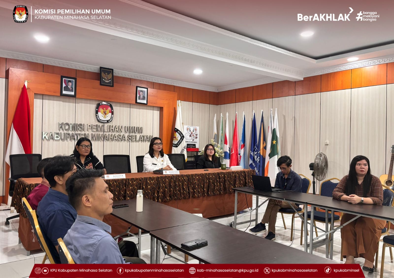 Amurang - Komisi Pemilihan Umum (KPU) Kabupaten Minahasa Selatan mengikuti Sosialisasi dan Bimbingan Teknis (Bimtek) penggunaan aplikasi E-Lapkin yang diselenggarakan KPU RI secara daring selama dua hari, Senin–Selasa (15–16 September 2025).