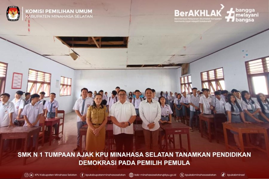 SMK N 1 TUMPAAN AJAK KPU MINAHASA SELATAN TANAMKAN PENDIDIKAN DEMOKRASI PADA PEMILIH PEMULA