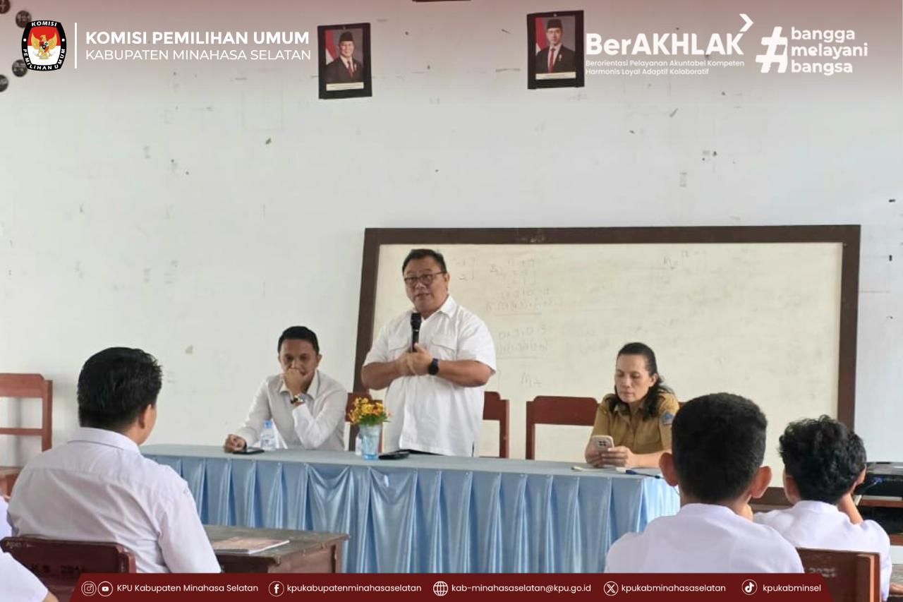 Amurang, 6 Oktober 2025 – Upaya menumbuhkan kesadaran berdemokrasi di kalangan pelajar kembali digalakkan. Kali ini, Komisi Pemilihan Umum (KPU) Kabupaten Minahasa Selatan memenuhi undangan dari SMK Negeri 1 Tumpaan untuk menjadi narasumber dalam kegiatan Sosialisasi dan Pendidikan Pemilih Berkelanjutan bagi segmen pemilih pemula.