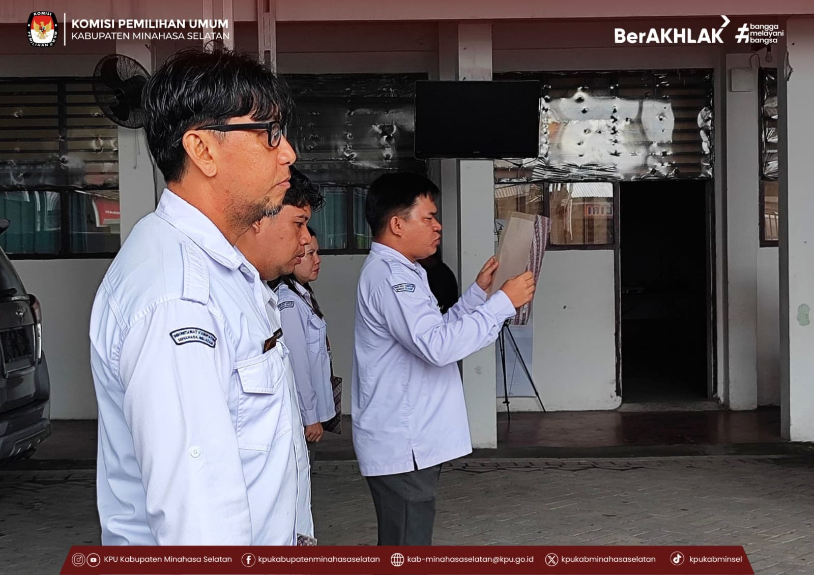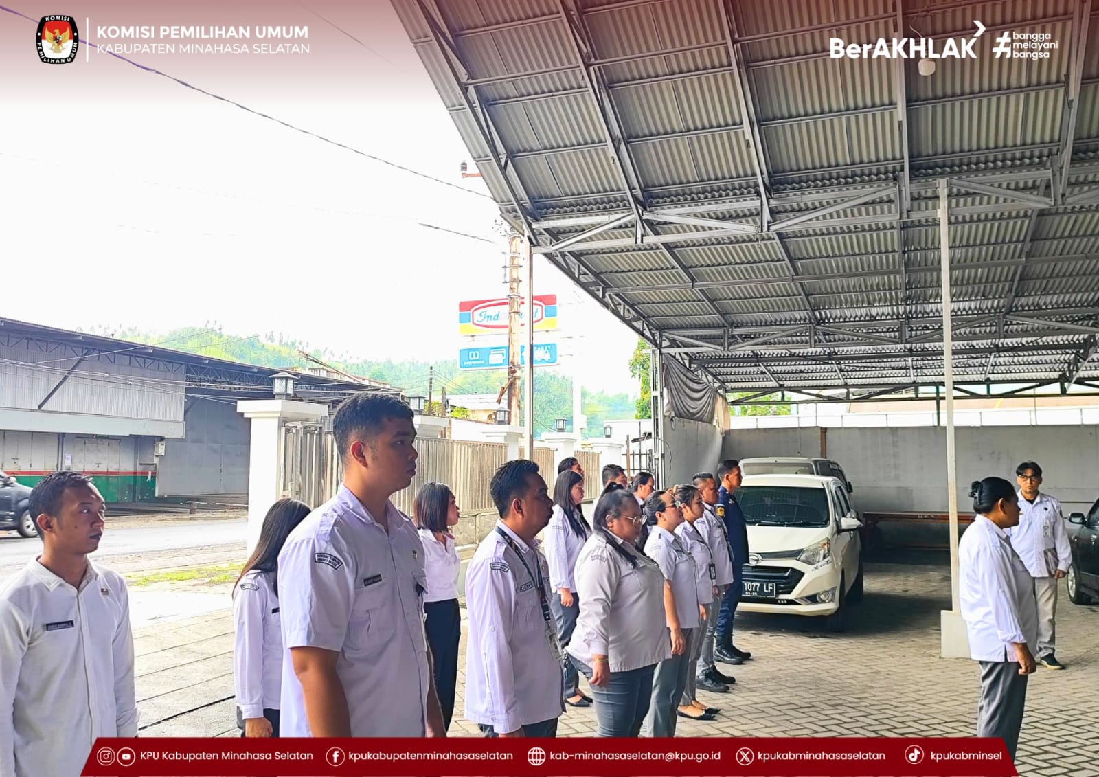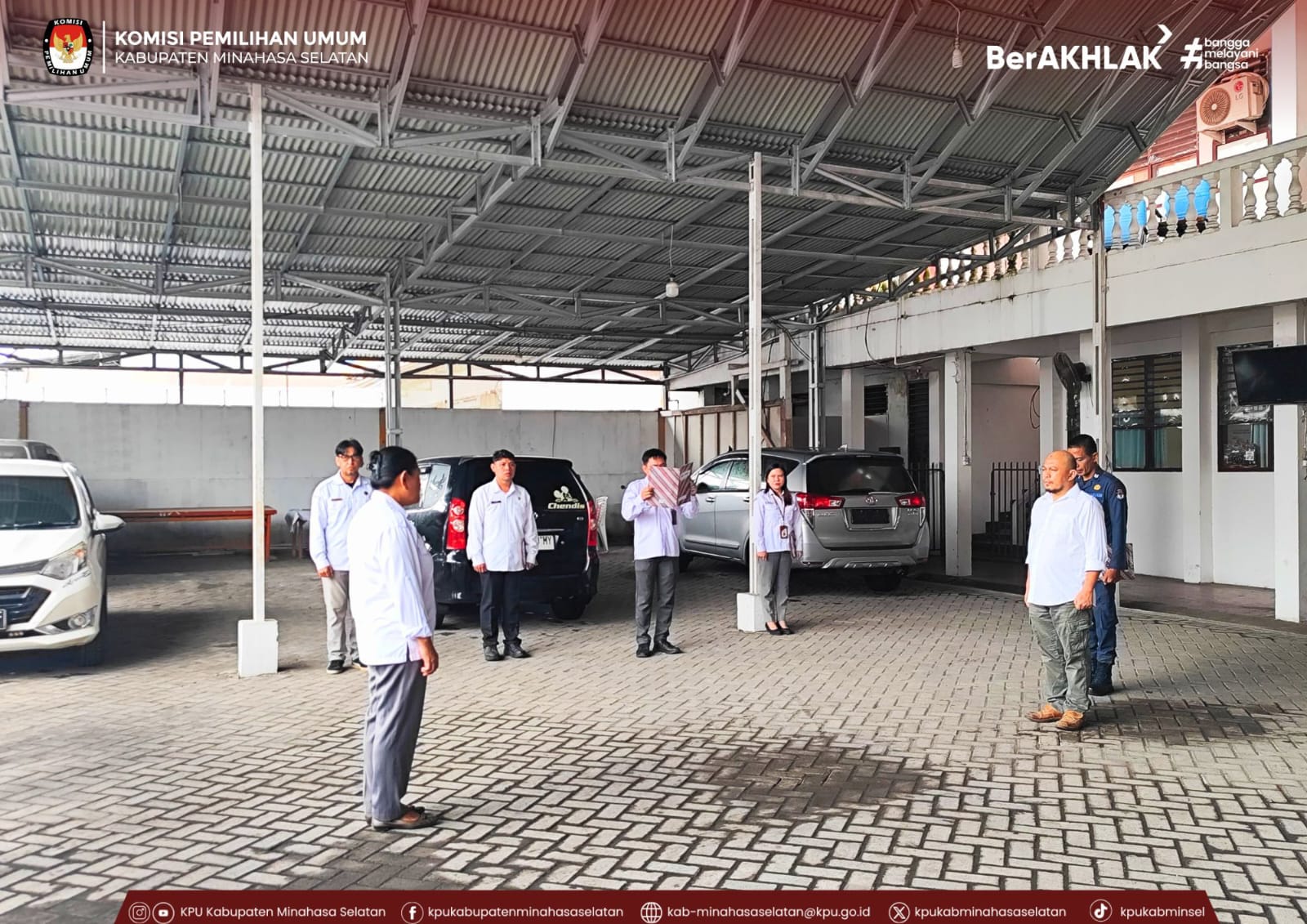 Amurang, 27 Oktober 2025 - Komisi Pemilihan Umum (KPU) Kabupaten Minahasa Selatan melaksanakan apel rutin pada Senin (27/10), bertempat di halaman kantor KPU Minsel. Kegiatan ini dipimpin oleh Kepala Sub Bagian Perencanaan, Data, dan Informasi, Youla Pepah, dengan Ketua Divisi Perencanaan, Data, dan Informasi, Fadly Munaiseche bertindak sebagai pembina apel.