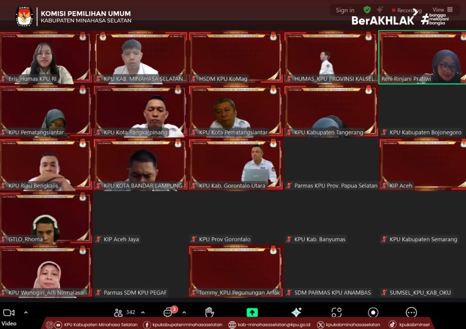 Amurang - Komisi Pemilihan Umum (KPU) Kabupaten Minahasa Selatan mengikuti kegiatan Knowledge Sharing Tata Kelola Bakohumas KPU Tahap III yang diselenggarakan oleh KPU Republik Indonesia, Senin (27/10/2025).