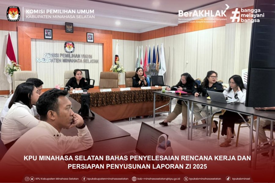 KPU MINAHASA SELATAN BAHAS PENYELESAIAN RENCANA KERJA DAN PERSIAPAN PENYUSUNAN LAPORAN ZI 2025