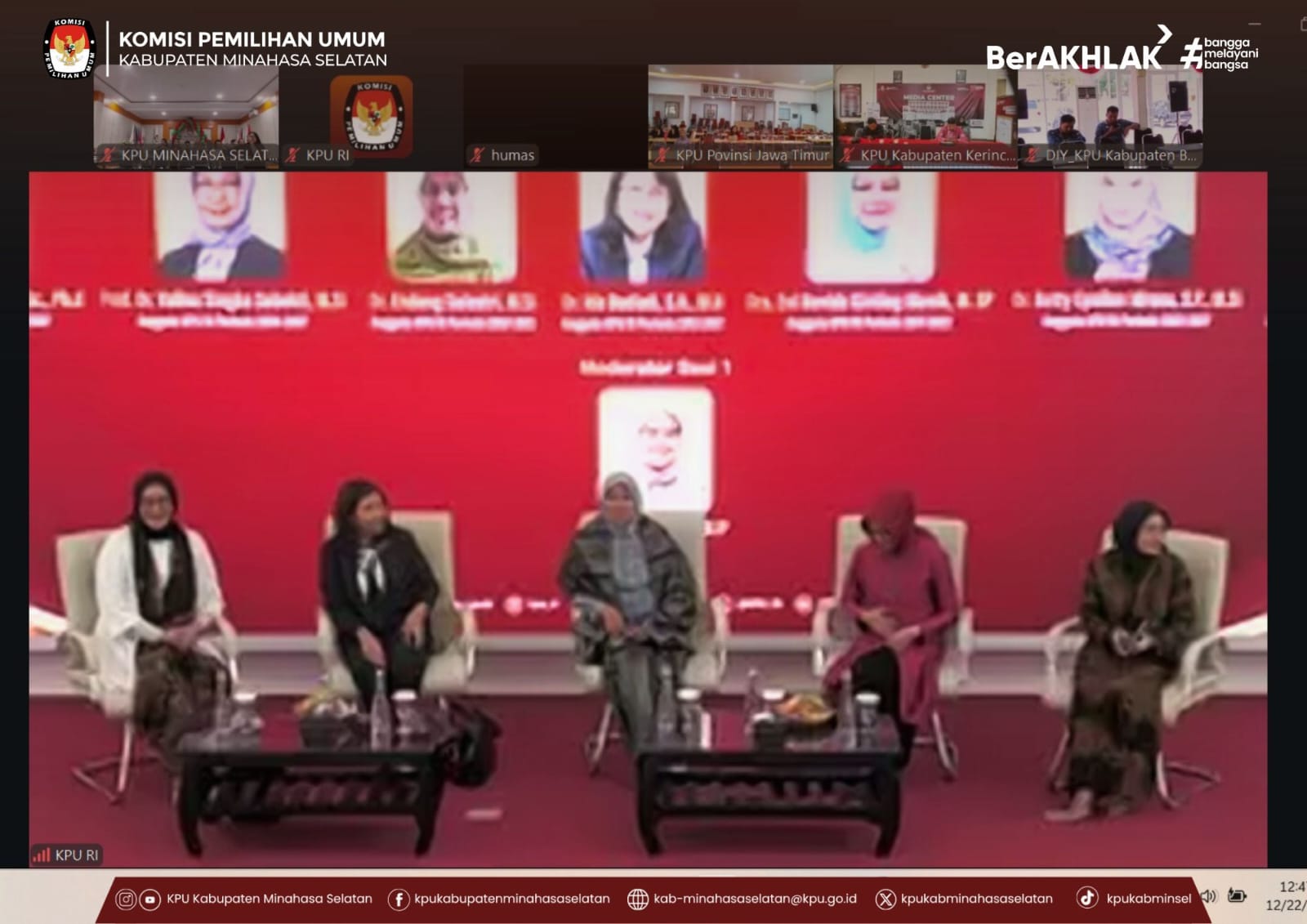 Amurang, – Komisi Pemilihan Umum (KPU) Kabupaten Minahasa Selatan berpartisipasi dalam dialog publik yang diselenggarakan oleh KPU Republik Indonesia secara daring melalui Zoom Meeting, Senin (22/12/2025). Kegiatan ini diikuti oleh seluruh jajaran KPU Kabupaten Minahasa Selatan dan dilaksanakan dari Ruang Rapat KPU Kabupaten Minahasa Selatan.