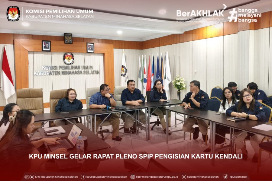 Melalui Rapat Pleno SPIP, KPU Kabupaten Minahasa Selatan berkomitmen untuk terus memperkuat sistem pengendalian internal guna mendukung penyelenggaraan pemilu dan pemilihan yang profesional, berintegritas, dan berkeadilan.