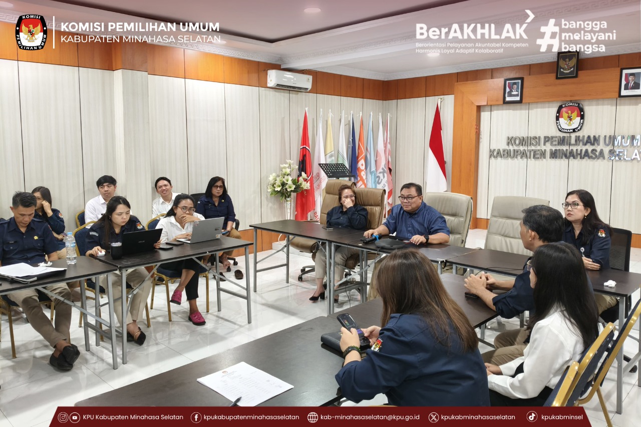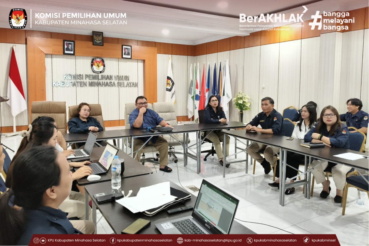 Rapat pleno ini dihadiri oleh Ketua dan Anggota KPU Kabupaten Minahasa Selatan, Sekretaris KPU, para Kasubag, serta Tim satgas SPIP KPU Minahasa Selatan.