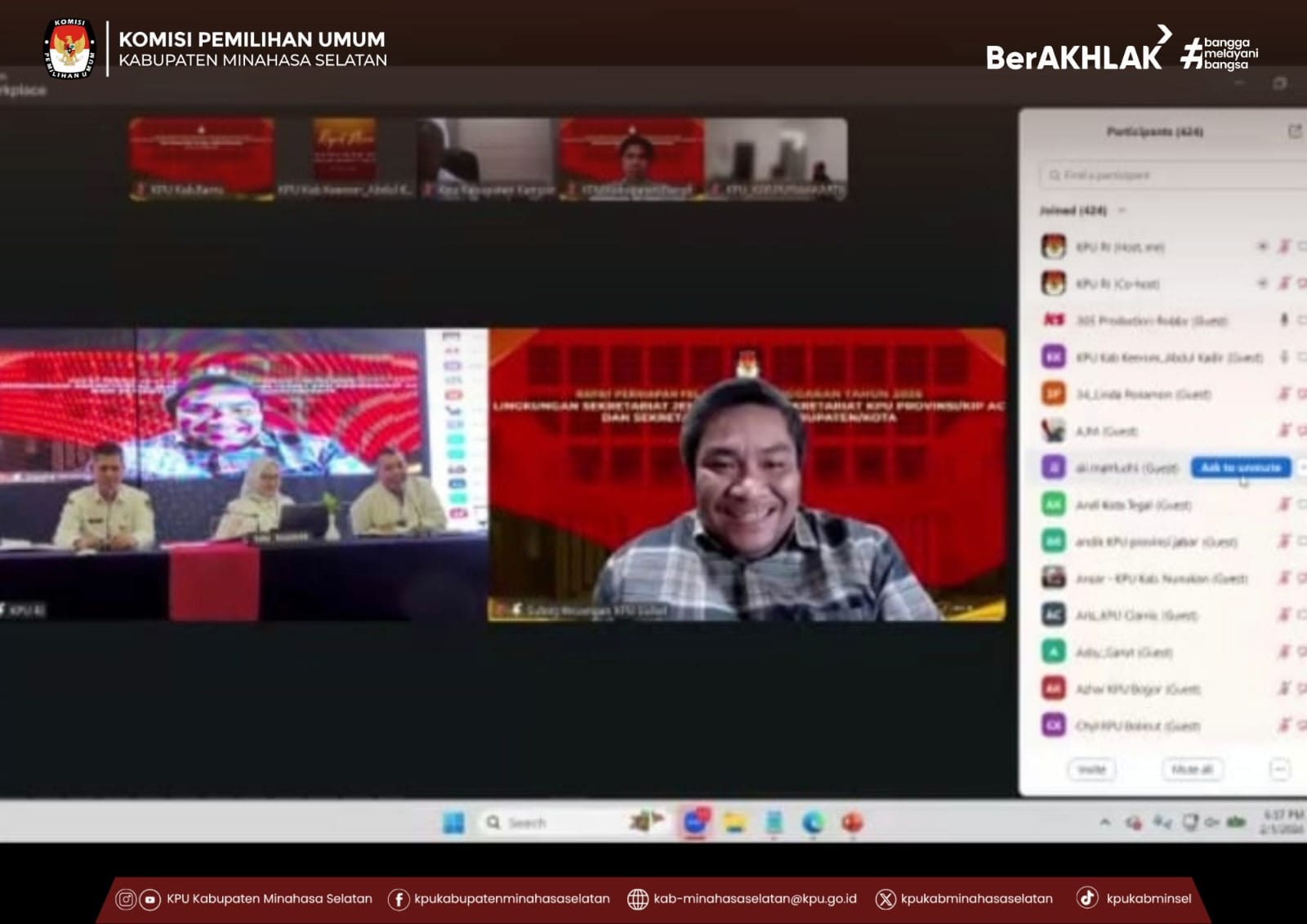 Amurang - Komisi Pemilihan Umum (KPU) Kabupaten Minahasa Selatan mengikuti kegiatan Zoom Meeting yang diselenggarakan oleh Komisi Pemilihan Umum Republik Indonesia (KPU RI) pada tanggal 4–5 Februari 2026. Kegiatan ini dilaksanakan secara daring dan diikuti oleh satuan kerja KPU kabupaten/kota, Rabu (4/02/2026).