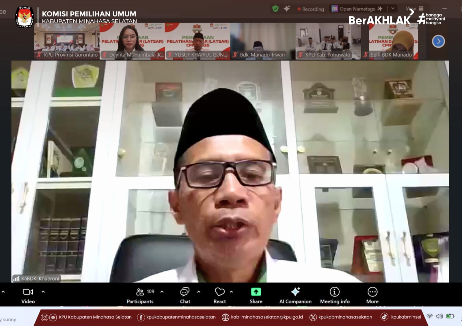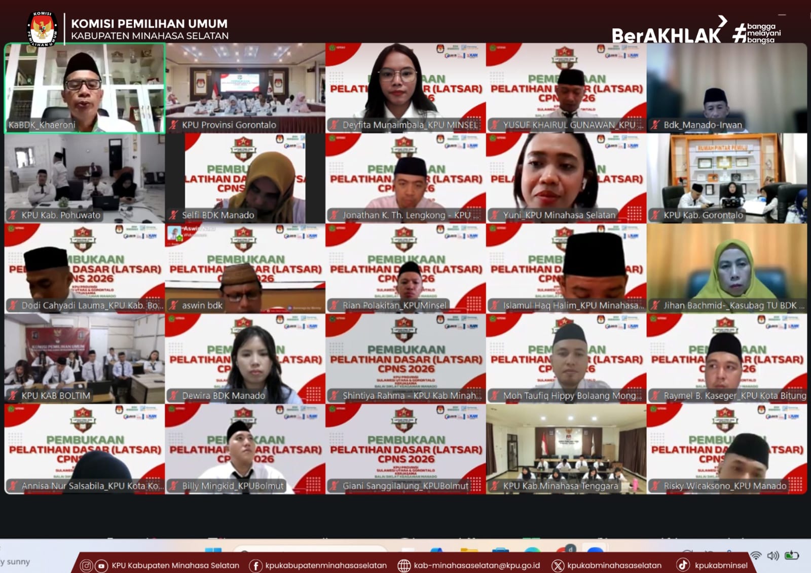 Amurang, – Sebanyak enam Calon Pegawai Negeri Sipil (CPNS) di lingkungan Sekretariat Komisi Pemilihan Umum Kabupaten Minahasa Selatan mengikuti Pembukaan Pelatihan Dasar (Latsar) CPNS Tahun 2026 yang dilaksanakan secara daring, Senin (23/2/2026). Kegiatan ini merupakan kerja sama KPU Provinsi Sulawesi Utara dan KPU Provinsi Gorontalo bersama Balai Diklat Keagamaan Manado.