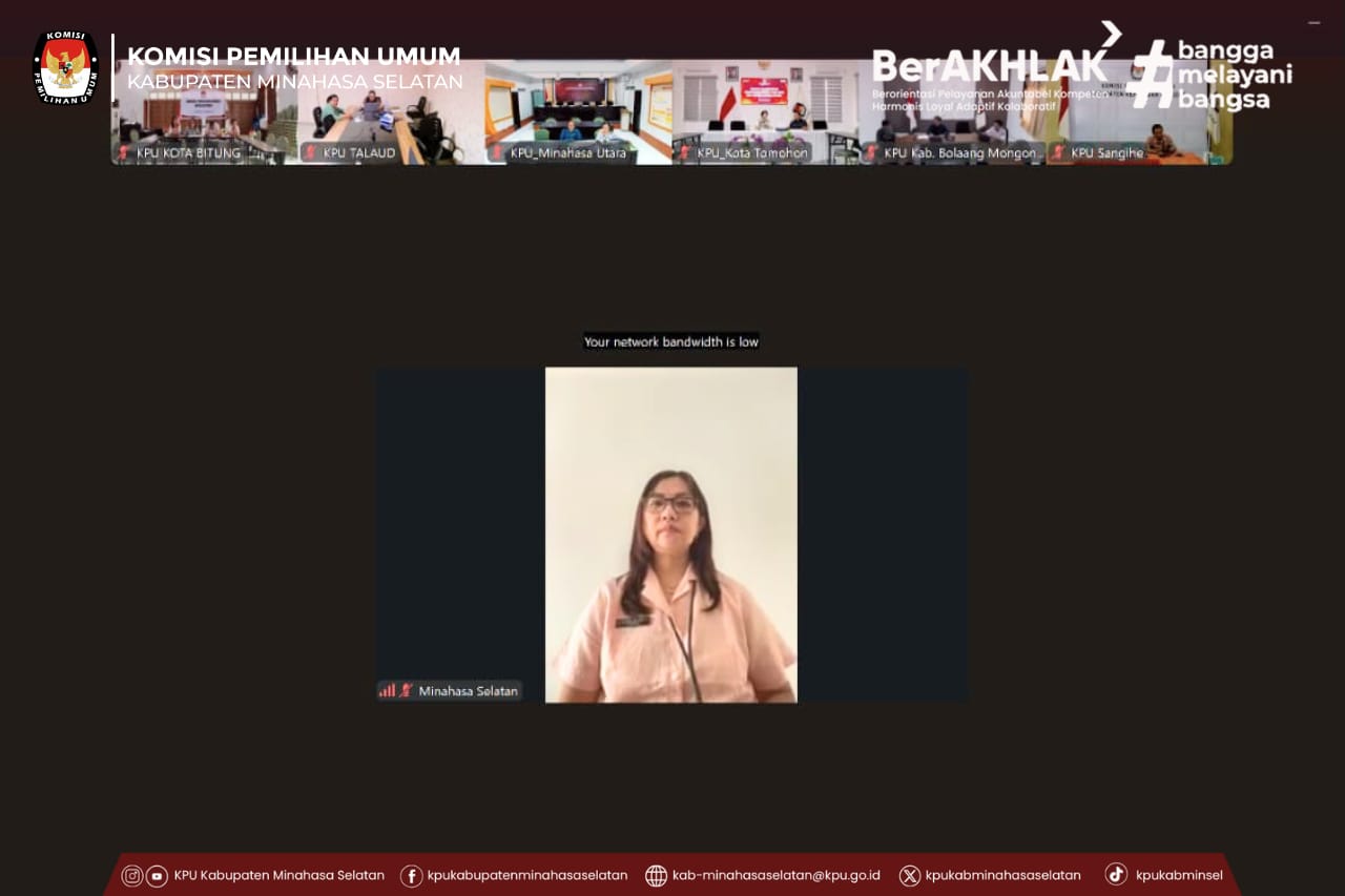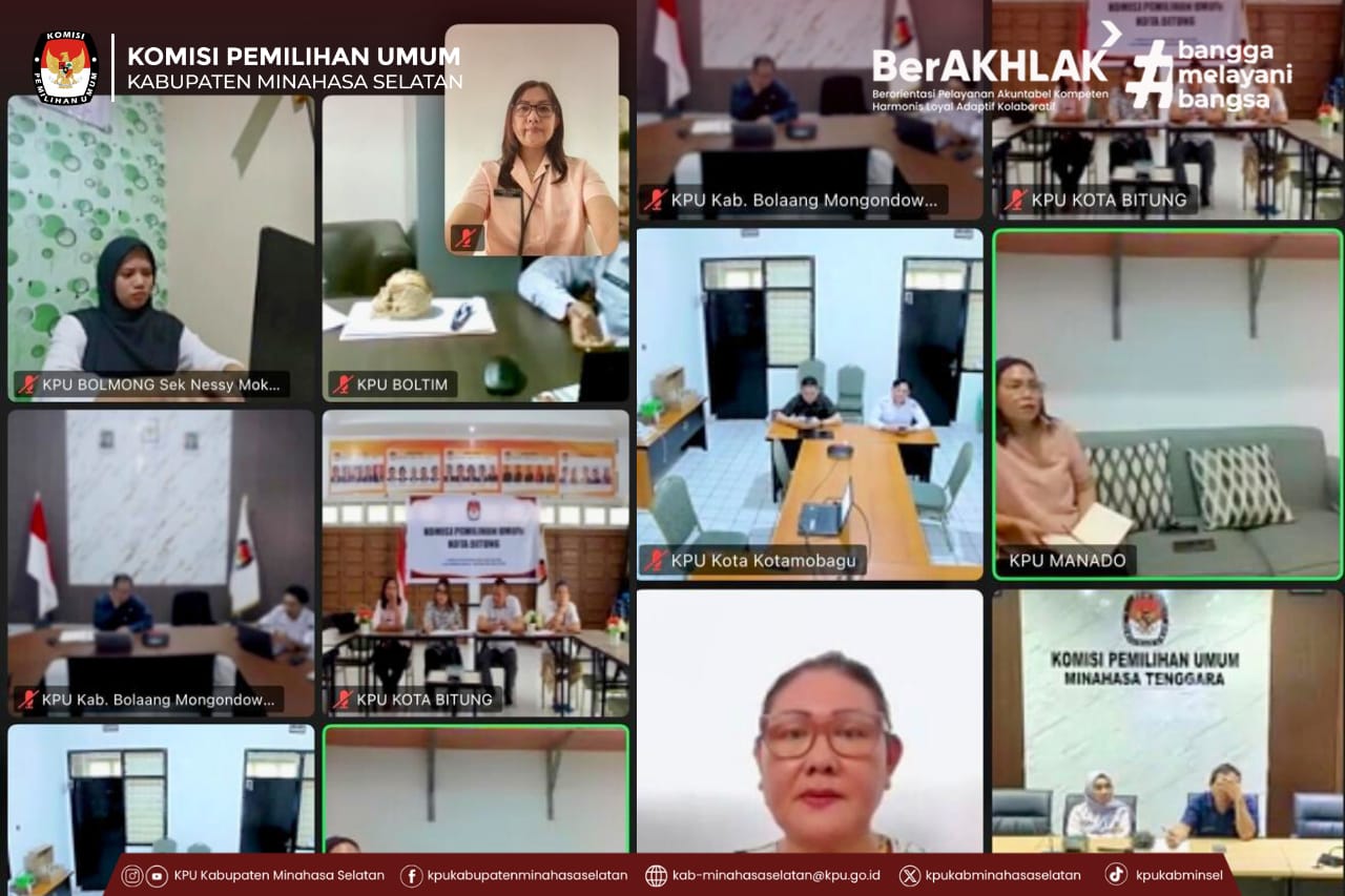 Amurang - Komisi Pemilihan Umum (KPU) Kabupaten Minahasa Selatan mengikuti Rapat Koordinasi dengan KPU Provinsi dan KPU Kabupaten/Kota se-Sulawesi Utara Kamis, 26 Februari 2026 secara daring melalui aplikasi Zoom Meeting. Adapun tujuan dari rapat koordinasi untuk evaluasi kegiatan sepanjang Bulan Februari 2026.