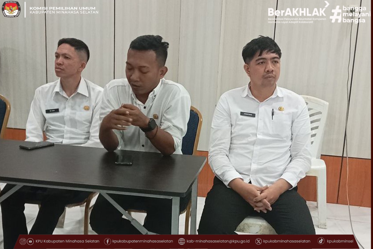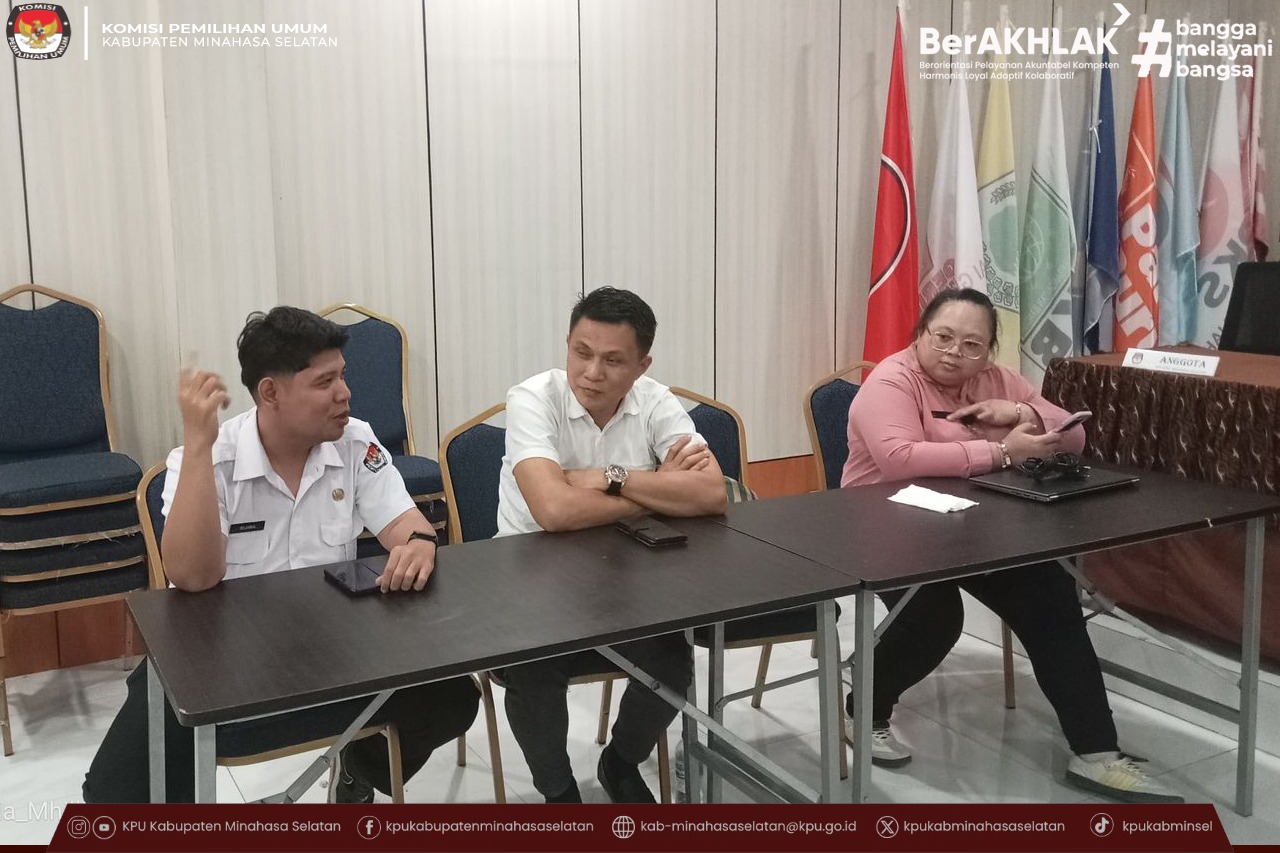 Rapat yang dipimpin oleh Anggota KPU Minsel Divisi Hukum dan Pengawasan, Sriwulan J. C. Suot, dihadiri oleh Anggota KPU Minsel Divisi Perencanaan, Data dan Informasi, Fadly Munaiseche, serta para Kepala Subbagian dan staf dari seluruh subbagian sekretariat.
