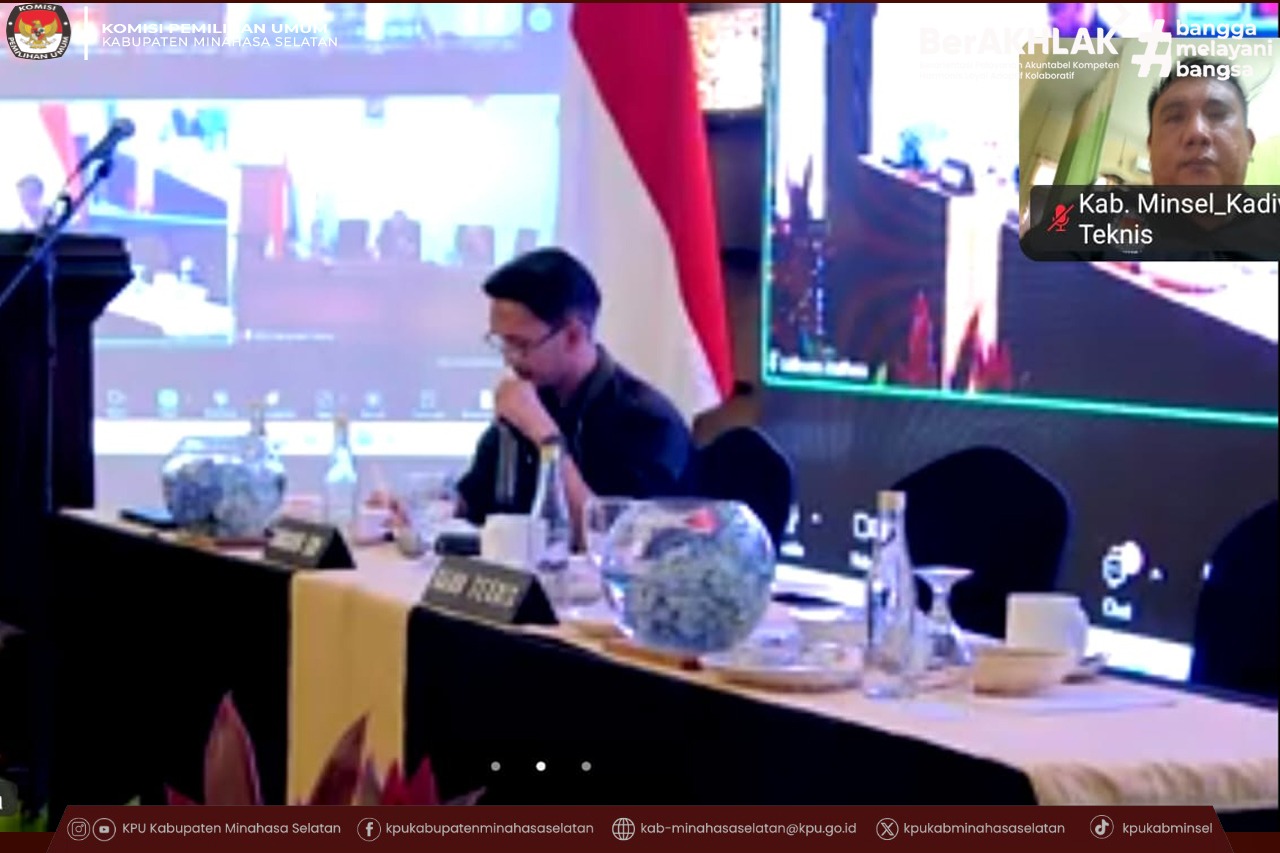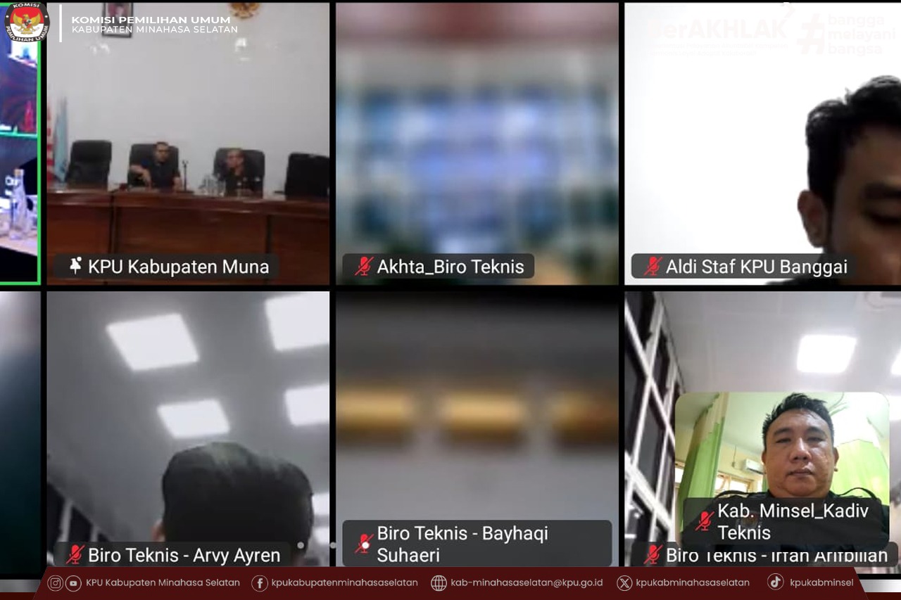Kegiatan berbagi pengalaman ini diikuti oleh ketua divisi teknis penyelenggaraan KPU Minahasa selatan Hanny Porajow dan Kasubag Tenis penyelenggaraan dengan metode daring lewat zoom meeting.