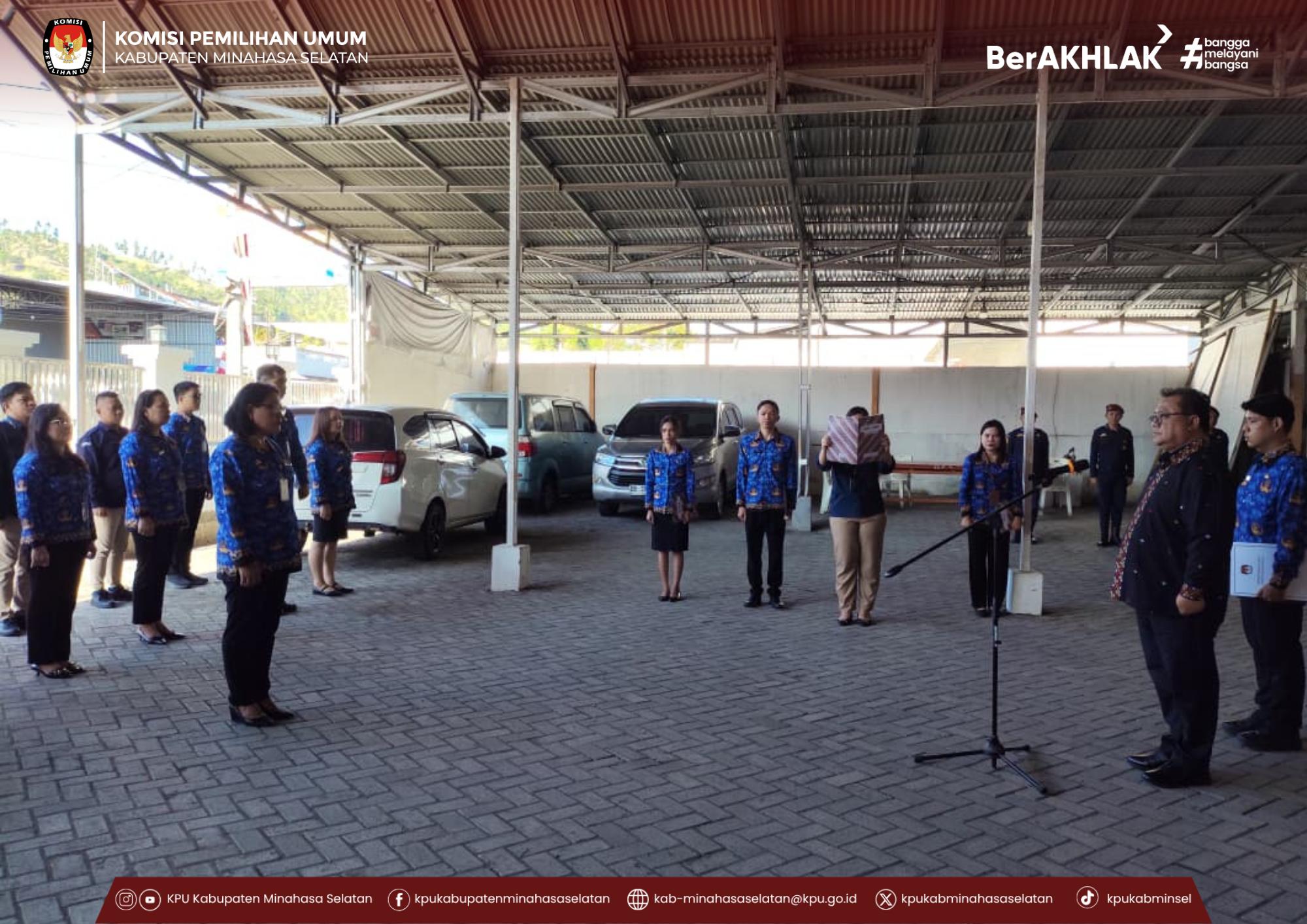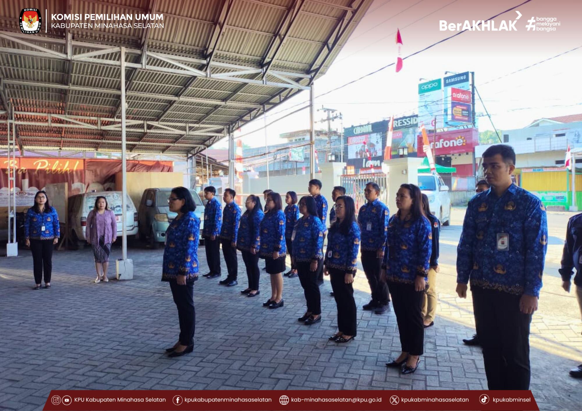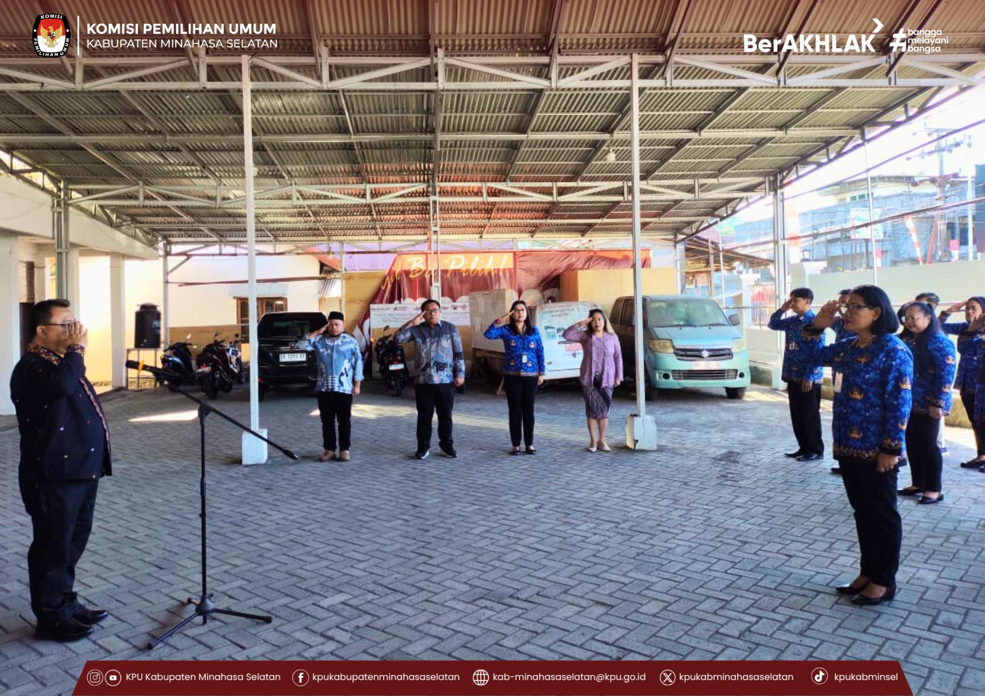 Upacara dimulai pukul 07.00 WITA di halaman Kantor KPU Minahasa Selatan, sesuai surat edaran KPU Republik Indonesia, dan berlangsung khidmat dengan dihadiri Ketua, Anggota, Sekretaris, para pejabat Struktural, serta seluruh staf Sekretariat di lingkungan KPU Minahasa Selatan.