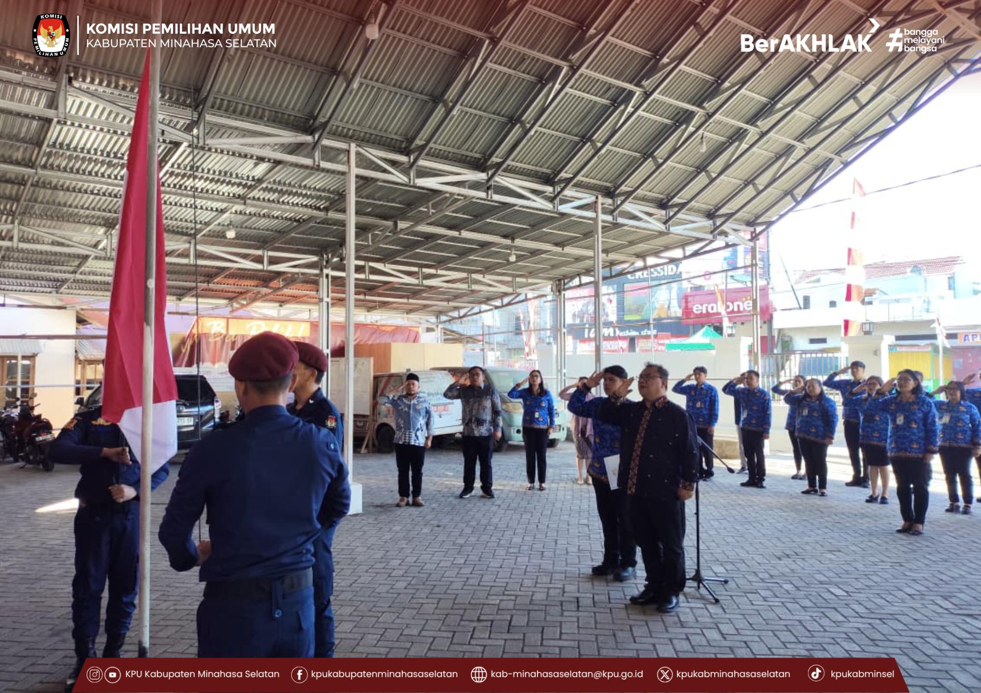 Amurang — Komisi Pemilihan Umum (KPU) Kabupaten Minahasa Selatan menggelar Upacara Bendera dalam rangka memperingati Hari Ulang Tahun (HUT) ke-80 Kemerdekaan Republik Indonesia, Minggu (17/08/2025).