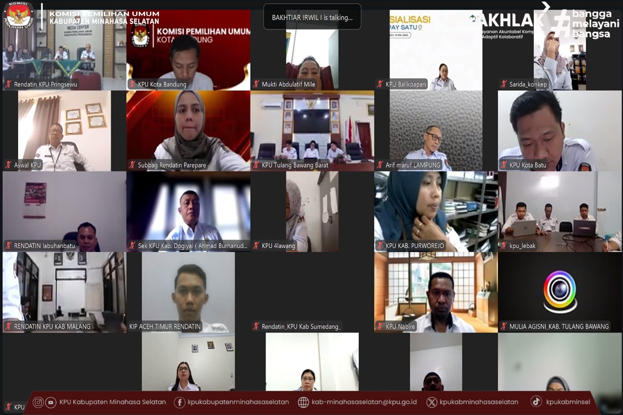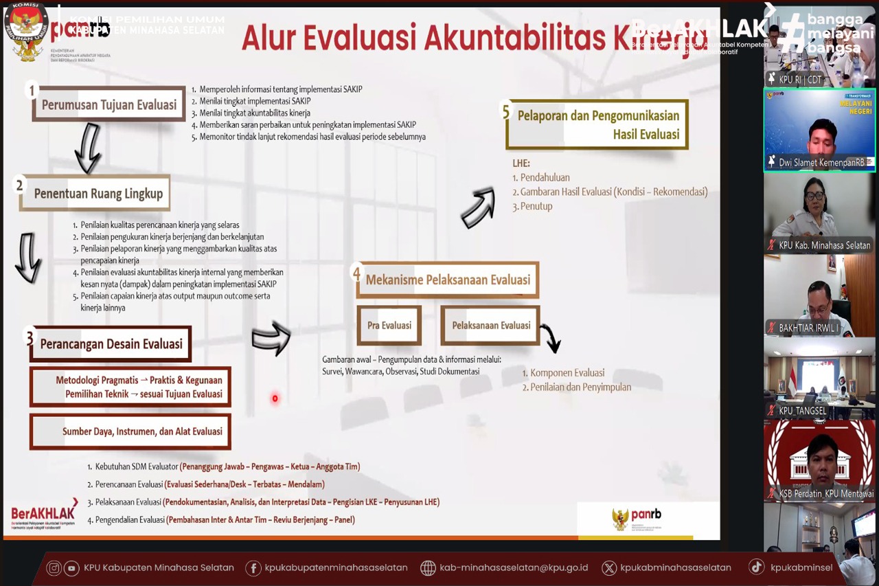 Amurang, 14 Juli 2025 — Komisi Pemilihan Umum (KPU) Kabupaten Minahasa Selatan mengikuti kegiatan Penguatan Kapasitas Pejabat Struktural dan Fungsional dalam Menyusun, Mengelola, dan Mengevaluasi Dokumen Sistem Akuntabilitas Kinerja Instansi Pemerintah (SAKIP) Tahun 2025 yang dilaksanakan secara daring pada Senin, 14 Juli 2025.