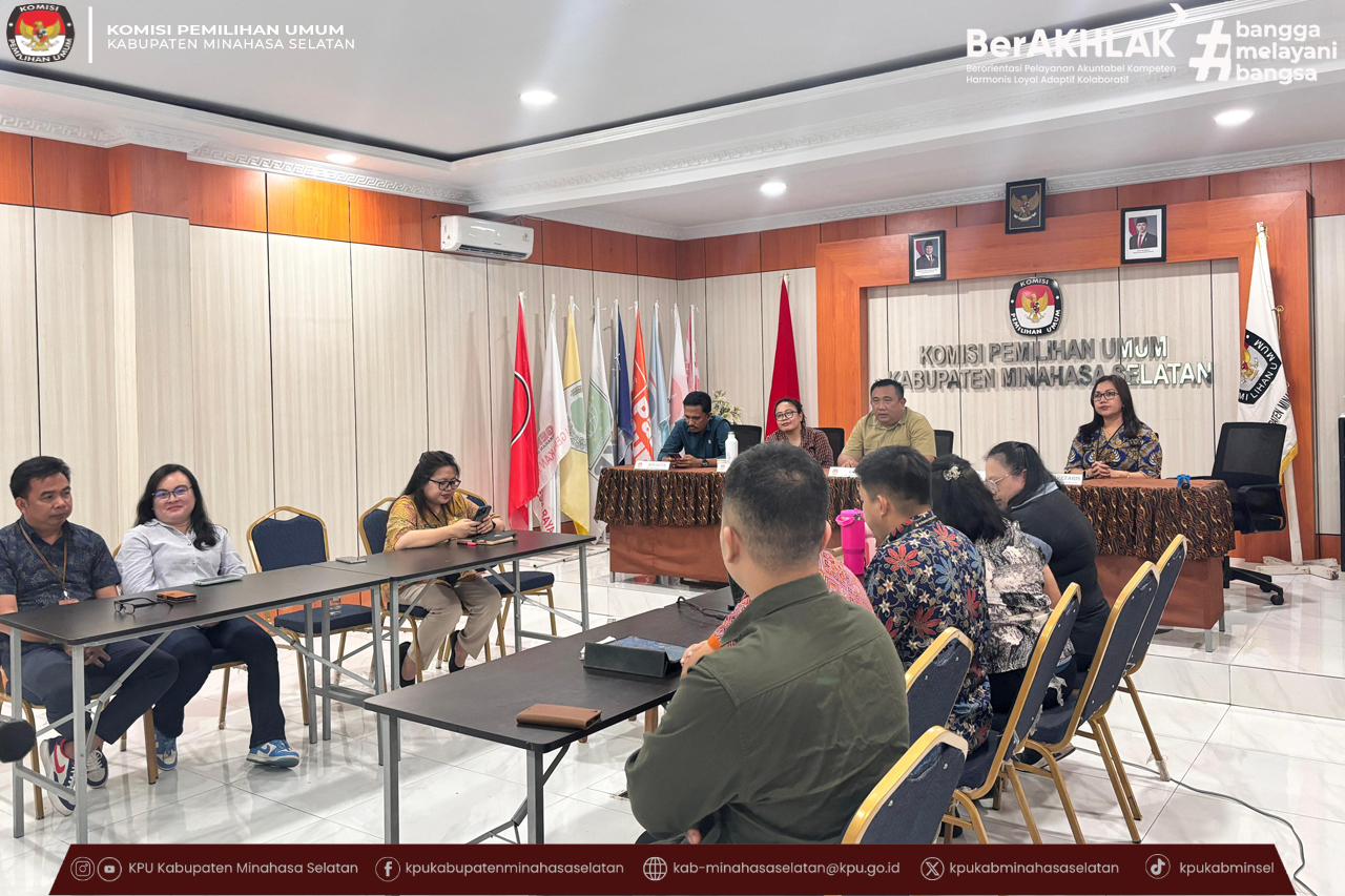 Amurang, 25 Juli 2025 – KPU Kabupaten Minahasa Selatan menggelar rapat koordinasi Tim JDIH (Jaringan Dokumentasi dan Informasi Hukum), Jumat, 25 Juli 2025, di Aula KPU Kabupaten Minahasa Selatan. Kegiatan ini dihadiri oleh Anggota KPU Divisi Teknis Penyelenggara, Hanny Porajow; Anggota KPU Divisi Sosdiklih, Parmas dan SDM, Fauzan Sirambang; Anggota KPU Divisi Hukum dan Pengawasan, Sriwulan Suot; serta Sekretaris Kabupaten Minahasa Seatan, Lani Alouw. Turut hadir Tim Teknis serta Pengelola Website dan Media Sosial KPU Kabupaten Minahasa Selatan.