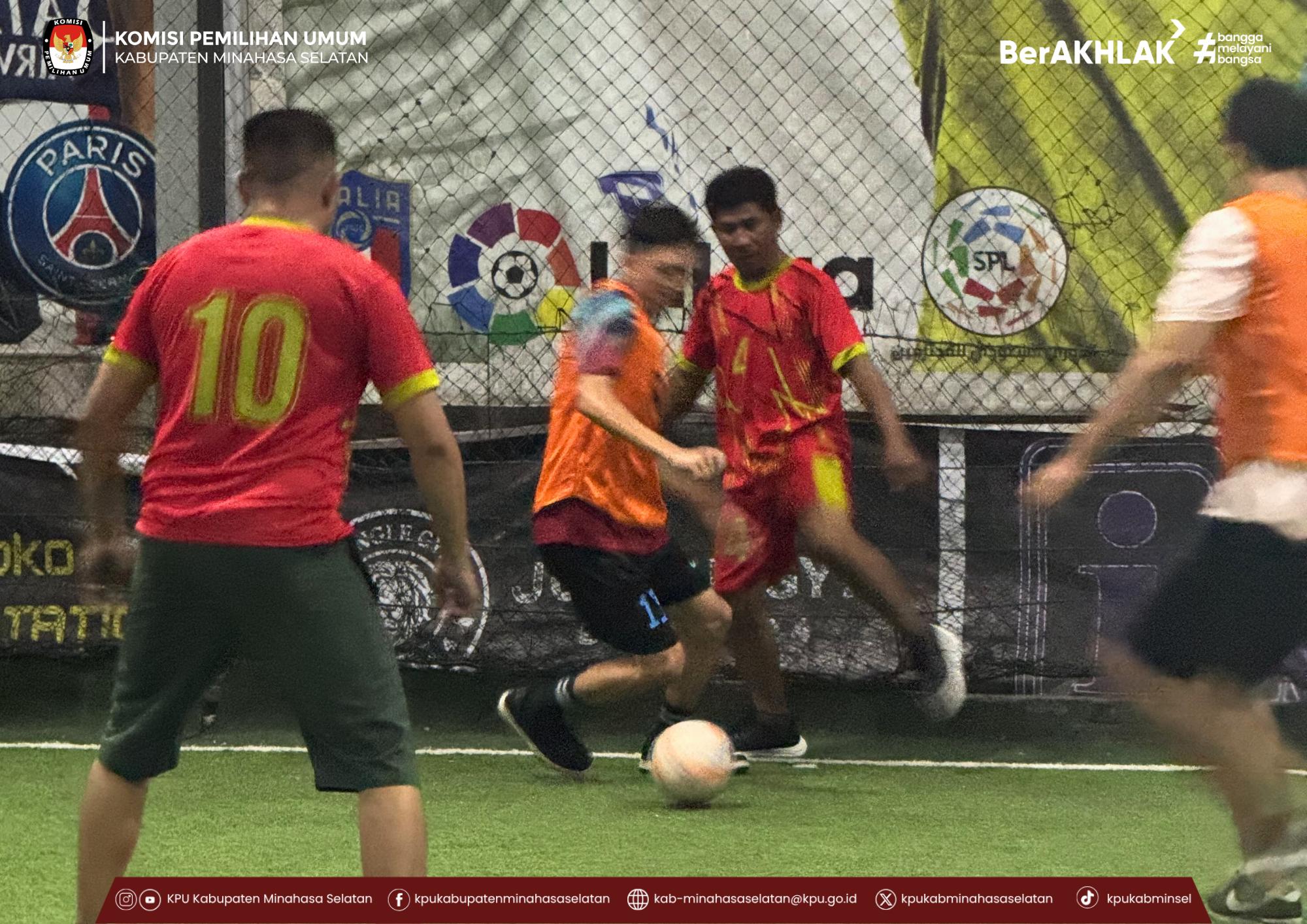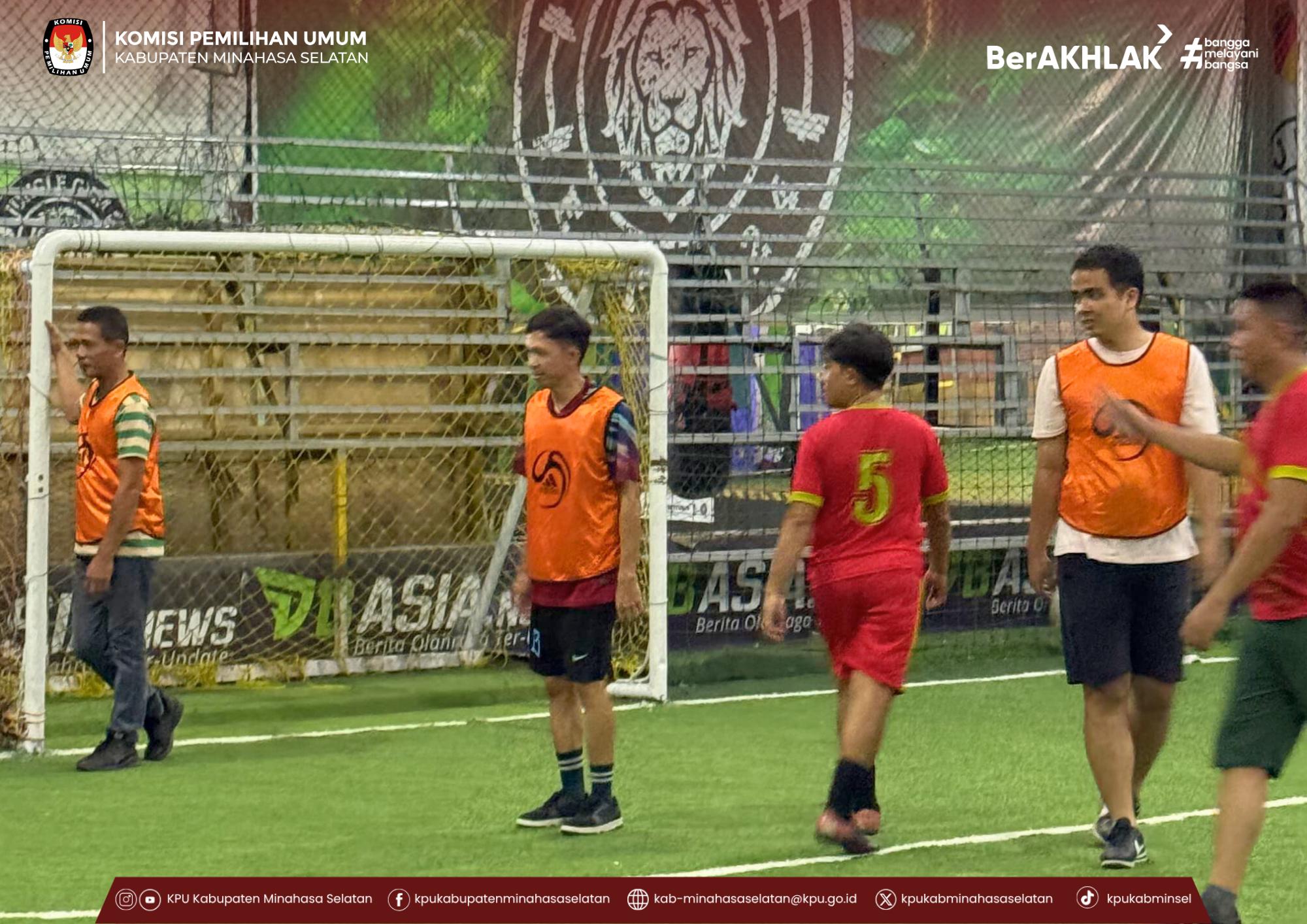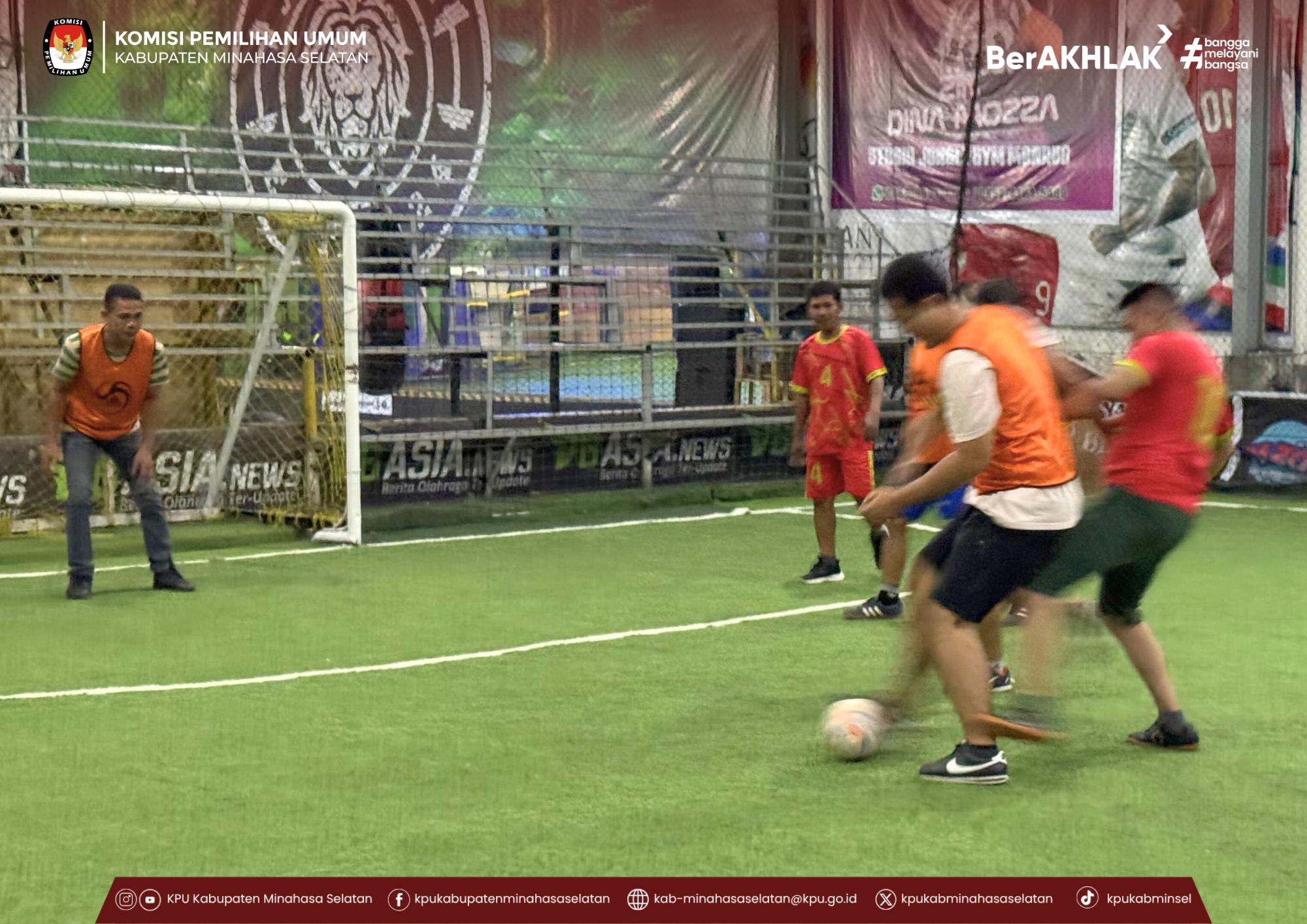 SEMANGAT SPORTIF, BANGUN SOLIDARITAS: KPU MINAHASA SELATAN DAN KPU MANADO BERTANDING DI LAPANGAN FUTSAL