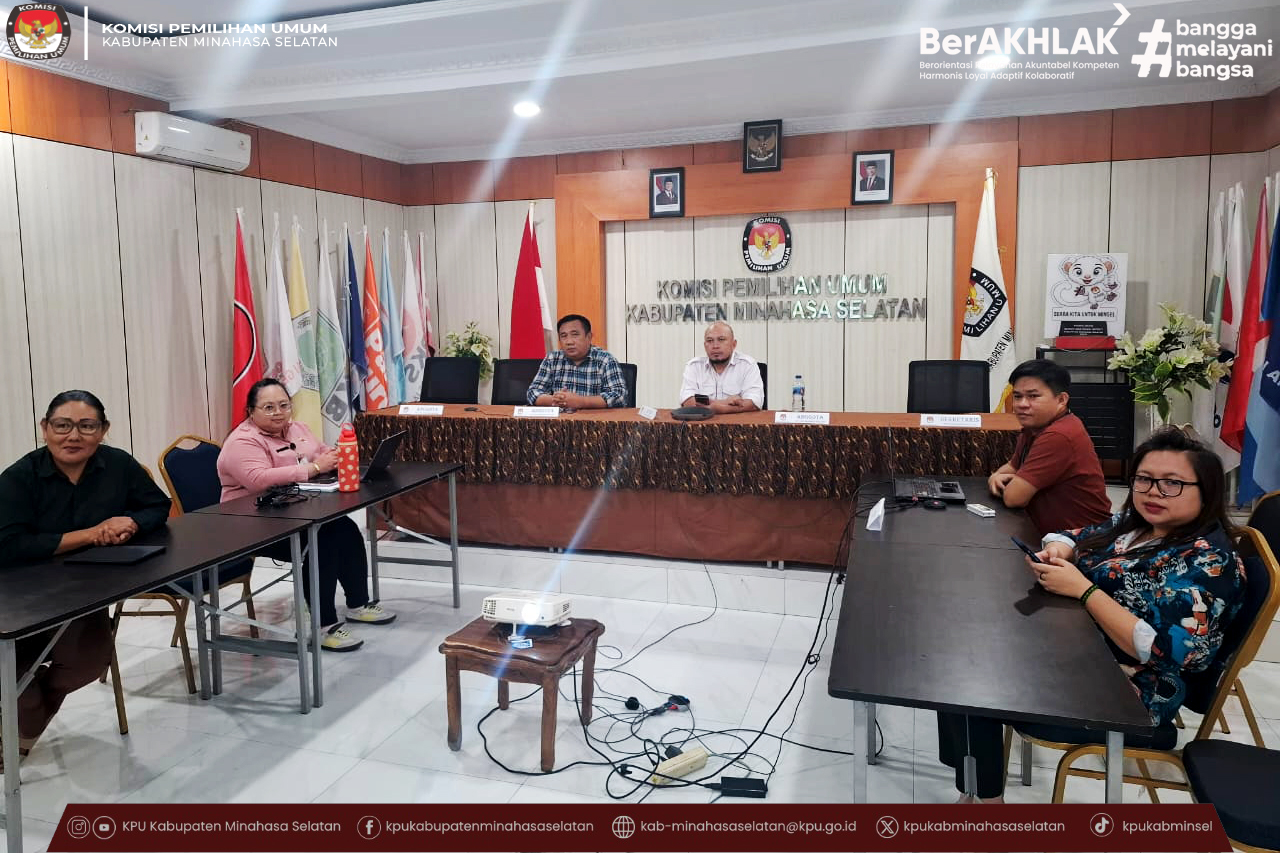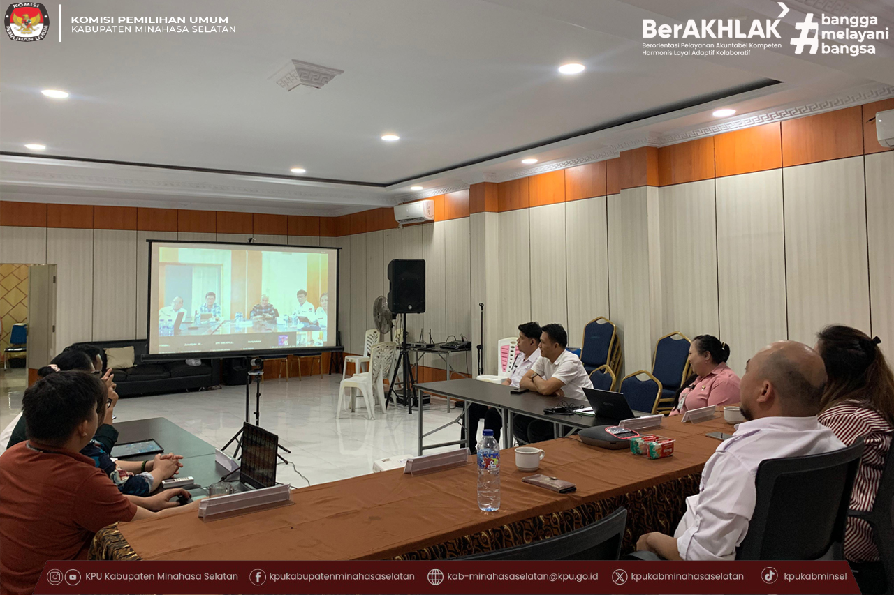 Dari KPU Kabupaten Minahasa Selatan, kegiatan ini diikuti oleh Ketua, para Anggota, Sekretaris, seluruh Kasubbag, serta operator SPIP, yang mengikuti kegiatan secara bersama dari kantor KPU Kabupaten Minahasa Selatan melalui media Zoom Meeting.