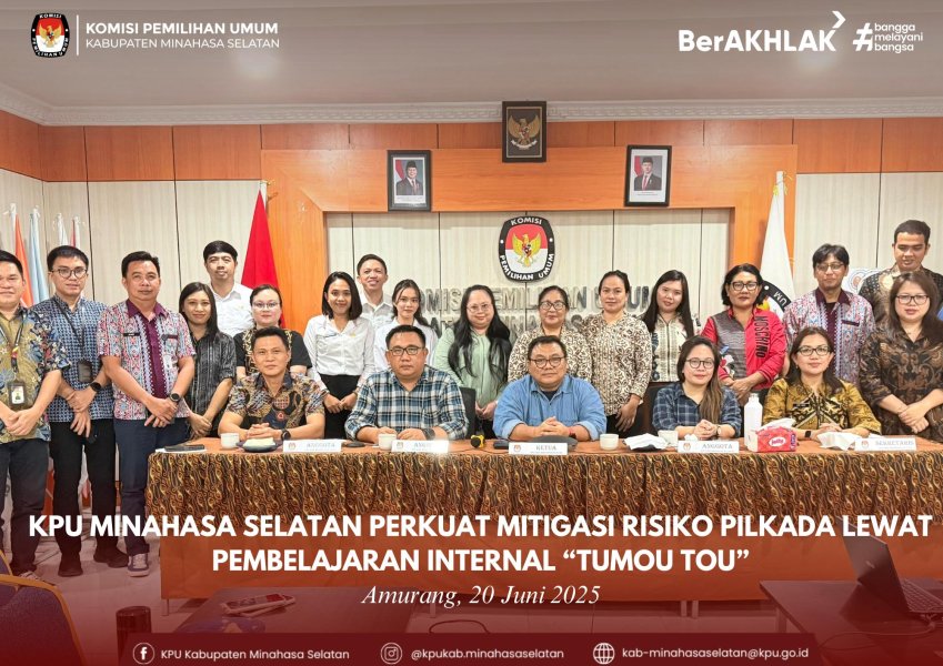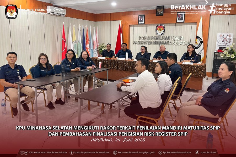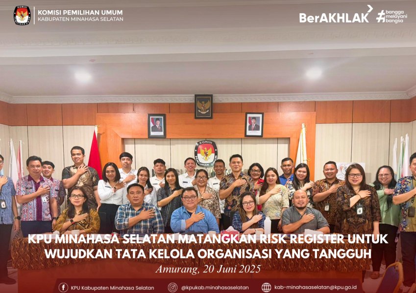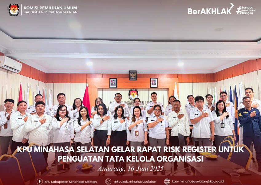 Amurang, 16 Juni 2025 – Komisi Pemilihan Umum (KPU) Kabupaten Minahasa Selatan menggelar Rapat Koordinasi Penyusunan Risk Register sebagai bagian dari upaya penguatan tata kelola organisasi dan penerapan manajemen risiko secara sistematis di lingkungan KPU.