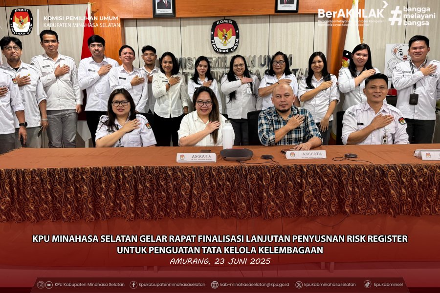 Dengan adanya penyusunan Risk Register ini, KPU Kabupaten Minahasa Selatan berharap dapat menciptakan sistem kerja yang lebih siap menghadapi ketidakpastian, memperkuat budaya sadar risiko, serta memastikan tercapainya sasaran strategis lembaga secara efektif dan efisien.