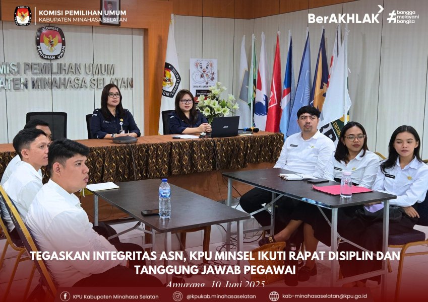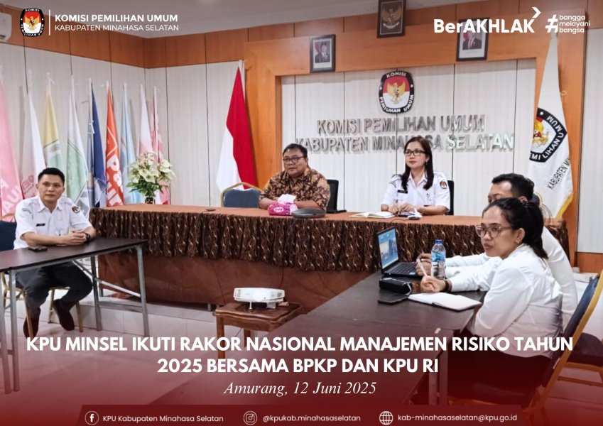 Amurang - Komisi Pemilihan Umum (KPU) Kabupaten Minahasa Selatan mengikuti kegiatan Rapat Koordinasi Implementasi Manajemen Risiko dan Pendampingan Penyusunan Risk Register (Daftar Risiko) Tahun 2025, yang diselenggarakan oleh KPU RI secara daring melalui Zoom Meeting pada Kamis (12/06/2025). Kegiatan ini diikuti oleh 38 KPU Provinsi dan 514 KPU Kabupaten/Kota se-Indonesia, serta menghadirkan narasumber dari Badan Pengawasan Keuangan dan Pembangunan (BPKP). Rakor dibuka secara resmi oleh Ketua KPU RI, Bapak Mochammad Afifuddin, dan dipandu langsung oleh Ibu Iffa Rosita, Anggota KPU RI yang juga menjabat sebagai Ketua Divisi Hukum dan Pengawasan. Hadir pula Inspektur Utama Wilayah II KPU RI, Bapak Adiwijaya Bhakti, sebagai pendamping kegiatan. Dari KPU Minahasa Selatan, kegiatan ini diikuti oleh Ketua KPU, Anggota KPU Divisi Hukum dan Pengawasan, Sekretaris, dan Kasubag. Dalam Rakor ini, peserta dibekali pemahaman untuk mengidentifikasi dan mengelola risiko-risiko potensial di lingkungan kerja KPU, baik di tingkat provinsi maupun kabupaten/kota. Tujuannya adalah memastikan setiap satuan kerja mampu mengantisipasi dan mengelola risiko secara efektif, demi mendukung tercapainya tujuan KPU sebagai lembaga yang mandiri, profesional, dan berintegritas. Rakor ditutup dengan penyampaian kesimpulan oleh Ibu Iffa Rosita, yang menegaskan pentingnya implementasi manajemen risiko sebagai bagian dari tata kelola organisasi yang baik.
