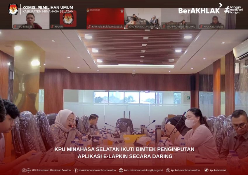 Amurang – Komisi Pemilihan Umum (KPU) Kabupaten Minahasa Selatan mengikuti Bimbingan Teknis (Bimtek) Tata Cara Penginputan Aplikasi E-Lapkin yang diselenggarakan secara daring oleh KPU Republik Indonesia pada Selasa, 23 September 2025. Kegiatan ini diikuti oleh seluruh satuan kerja KPU, termasuk KPU Provinsi/KIP Aceh serta KPU/KIP Kabupaten/Kota se-Indonesia. Bimtek dibuka oleh Kepala Biro Perencanaan dan Organisasi KPU RI, M. Syahrizal Iskandar. Dalam sambutannya, ia menegaskan pentingnya pemanfaatan aplikasi E-Lapkin sebagai upaya mendorong akuntabilitas dan transparansi kinerja di lingkungan KPU. “Saat ini nilai akuntabilitas KPU berada pada angka 69,5 dengan predikat B. Dengan penerapan E-Lapkin, diharapkan nilai tersebut dapat meningkat menjadi BB,” ungkapnya. Pada sesi materi, Dwi Selamet dari Kementerian PANRB memberikan pemaparan terkait tata cara penggunaan aplikasi E-Lapkin, mulai dari proses penginputan data hingga penyusunan laporan kinerja. Ia menjelaskan bahwa aplikasi ini dirancang untuk memberikan berbagai manfaat, antara lain mempermudah pelaporan, menjaga konsistensi data, serta mempercepat proses evaluasi kinerja. Materi kedua disampaikan oleh perwakilan dari Pusat Data dan Informasi KPU RI, yang memperkuat pemahaman peserta mengenai integrasi dan pemanfaatan data dalam aplikasi tersebut. Dari KPU Kabupaten Minahasa Selatan, kegiatan ini diikuti oleh Kasubbag Perencanaan, Data dan Informasi, bersama operator E-Lapkin. Dengan adanya bimtek ini, seluruh jajaran KPU, termasuk KPU Minahasa Selatan, diharapkan dapat memahami mekanisme penggunaan aplikasi E-Lapkin dengan baik serta mampu mengimplementasikannya secara optimal di lingkungan kerja masing-masing. Hal ini penting untuk memastikan proses pelaporan kinerja berjalan secara efektif, akurat, dan sesuai dengan ketentuan yang berlaku.