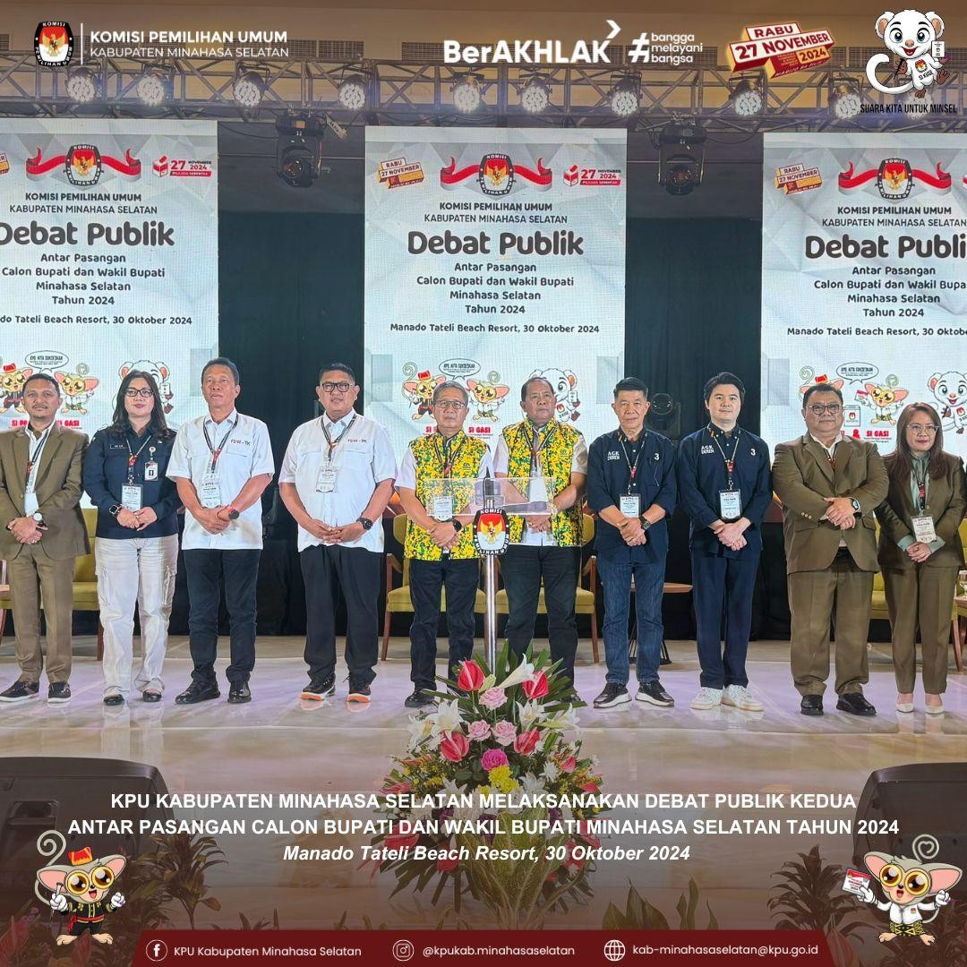 KPU Kabupaten Minahasa Selatan kembali melaksanakan debat publik kedua antar pasangan calon Bupati dan Wakil Bupati Minahasa Selatan tahun 2024, yang diadakan pada 30 Oktober 2024 di Manado Tateli Beach Resort. Acara ini dimulai dengan sambutan dari Ketua KPU Kabupaten Minahasa Selatan, Tomy Moga, yang menekankan pentingnya debat publik sebagai sarana bagi para calon untuk memaparkan visi, misi, dan program kerja mereka. Tema yang diangkat dalam debat kali ini adalah “Tata Kelola Pemerintahan yang Baik dan Bersih,” dengan topik tambahan mengenai “Sinergitas Pemerintahan,” “Komunikasi dan Informatika,” “Peraturan Daerah,” “Pemberdayaan Perempuan dan Perlindungan Anak,” serta “Ketenteraman, Ketertiban Umum, dan Perlindungan Masyarakat.” Debat ini dipandu oleh dua moderator, dr. Truly Kerap, M.Ks., dan Chetiza Lumingkewas, yang menjaga jalannya diskusi tetap kondusif dan terarah. Sebanyak 12 panelis dari berbagai latar belakang turut terlibat, antara lain Dr. Arnold Poli, SH., MAP, Dr. Jefrey Delaru, ST., MT, Dr. Welly Waworundeng, S.Sos., M.Si, Dr. Mayske R. Liando, S.Pd., M.Pd, Dr. Verry Y. Londa, S.Sos., M.Si, Dr. Audy Aldrin Kenap, ST., M.Sc, Isyana Kurniasari Konoras, SH., MH, Franky Rengkung, SIP., MA, Anis R. Toma, S.Pd.I., M.Pd.I, Lisa Anjani Siwi, SH.I., MA, Anas Yuliadi Nurdin, S.S., M.Hum, dan Santie Turangan, S.Pt., M.Si. Kehadiran para panelis ini memberikan perspektif mendalam mengenai berbagai isu penting yang menjadi perhatian masyarakat. Dalam debat tersebut, setiap pasangan calon berkesempatan untuk memaparkan strategi mereka dalam mewujudkan tata kelola pemerintahan yang baik dan bersih, serta memberikan solusi atas permasalahan yang ada di Minahasa Selatan. Para calon juga ditantang untuk menjawab pertanyaan panelis terkait upaya mereka dalam meningkatkan sinergitas antar instansi, penggunaan teknologi informasi dalam pemerintahan, implementasi peraturan daerah, hingga program pemberdayaan perempuan dan perlindungan anak. Antusiasme masyarakat yang hadir di lokasi dan yang menyaksikan secara daring menunjukkan besarnya harapan masyarakat terhadap calon pemimpin yang mampu membawa perubahan positif bagi Minahasa Selatan.
