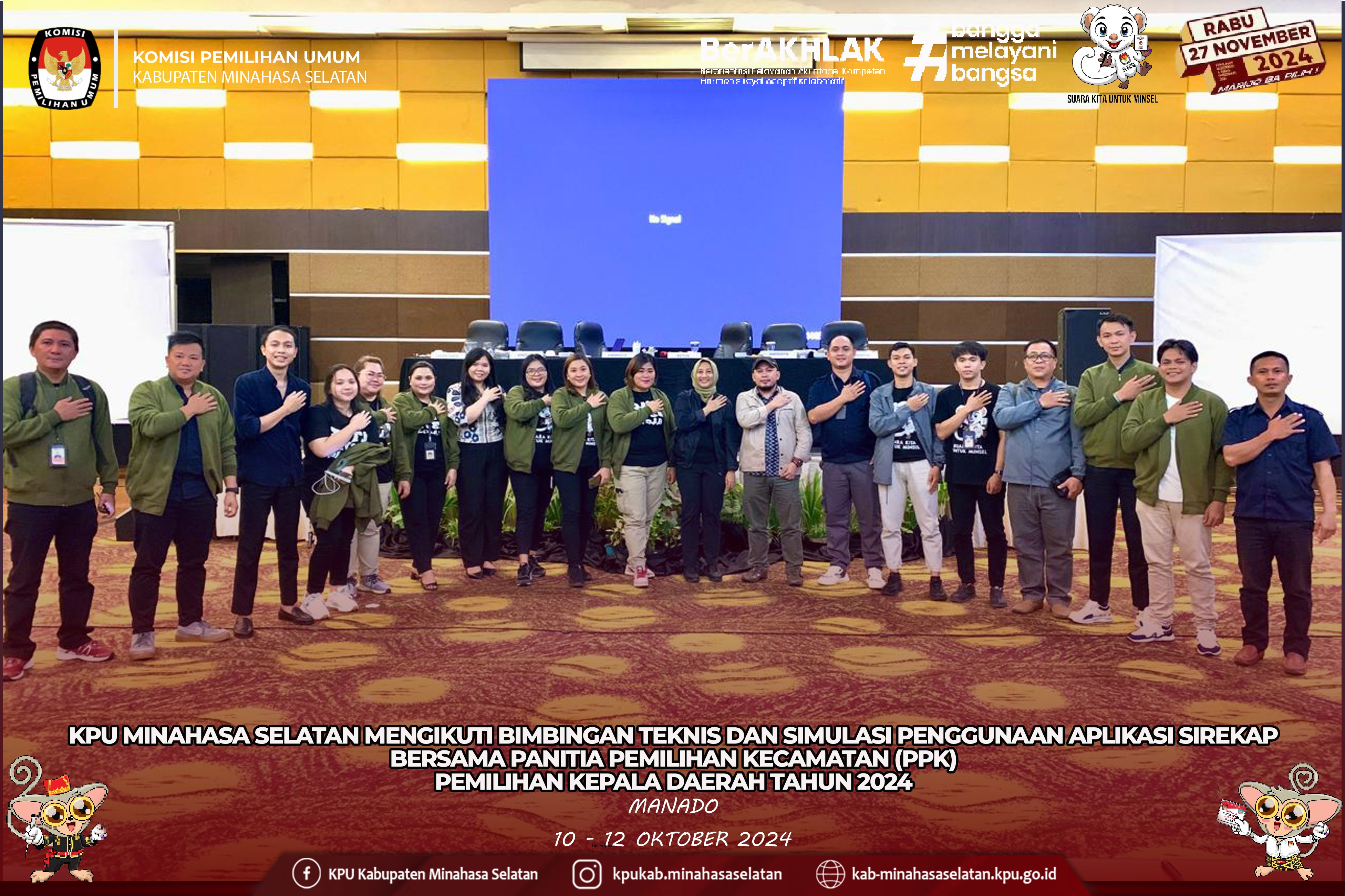 Komisi Pemilihan Umum (KPU) Kabupaten Minahasa Selatan mengikuti kegiatan Bimbingan Teknis dan Simulasi Penggunaan Aplikasi Sirekap untuk Panitia Pemilihan Kecamatan (PPK) Pemilihan Kepala Daerah tahun 2024 berlangsung di Novotel Manado Golf Resort & Convention Center pada 10 – 12 Oktober 2024, dihadiri oleh anggota KPU kabupaten/kota Divisi Perencanaan Data dan Informasi, Kasubbag Perencanaan Data dan Informasi, PPK Divisi Data, serta admin/operator Sirekap dari 15 kabupaten/kota di Sulawesi Utara. Hadir dalam kegiatan tersebut Ketua Divisi Perencanaan Data dan Informasi KPU Kabupaten Minahasa Selatan bapak Fadly Munaiseche, Kasubbag Perencanaan Data dan Informasi ibu Youla Pepah serta Operator. Acara dibuka oleh Ketua KPU Provinsi Sulawesi Utara, Kenly Poluan, dalam sambutannya sekaligus membuka acara, menyampaikan bahwa tahapan Pilkada saat ini berlangsung sangat padat, dengan jadwal kegiatan yang berdekatan. Oleh karena itu, beliau mengingatkan pentingnya menjaga kesehatan dan fokus dalam bekerja. Kenly Poluan juga menekankan pentingnya kerjasama dan koordinasi antar divisi, serta antara KPU di setiap tingkatan, untuk memastikan kelancaran pelaksanaan tahapan-tahapan Pilkada. Pengelolaan Sirekap menjadi salah satu fokus utama, terutama dalam mengatasi masalah yang mungkin timbul dari faktor sumber daya manusia dan teknologi. Beliau mengingatkan agar pengelolaan Sirekap dilakukan dengan penuh kehati-hatian, mengingat pada Pilkada sebelumnya, beberapa PPK diberhentikan karena kesalahan dalam pengelolaan aplikasi tersebut. Sambutan kedua disampaikan oleh Ketua Divisi Perencanaan Data dan Informasi, Lanny Ointu, yang menjelaskan tujuan utama Bimtek ini, yaitu untuk memberikan pemahaman teknis kepada PPK mengenai penggunaan aplikasi Sirekap dalam proses rekapitulasi suara elektronik. Lanny Ointu menegaskan bahwa ketelitian dan kepatuhan terhadap prosedur sangat penting agar tidak terjadi kesalahan yang dapat berdampak pada hasil Pemilihan Kepala Daerah. Beliau juga mengingatkan bahwa kesalahan pada pengelolaan aplikasi Sirekap di masa lalu telah mengakibatkan beberapa pihak dijatuhi hukuman pidana, sehingga semua peserta harus bekerja dengan penuh kehati-hatian. Hadir sebagai narasumber dalam kegiatan ini ialah, Zulfikli Densi dari Bawaslu Provinsi Sulawesi Utara, Perwakilan Kejaksaan Tinggi Provinsi Sulawesi Utara, Perwakilan Kepolisian Daerah Provinsi Sulawesi Utara, dan Perwakilan Badan Intelijen Negara Provinsi Sulawesi Utara. Dengan diadakannya simulasi ini, diharapkan PPK mampu melaksanakan tugas mereka dengan baik dan memastikan seluruh proses rekapitulasi Pilkada 2024 berjalan dengan transparan, akurat, dan bebas dari kesalahan.