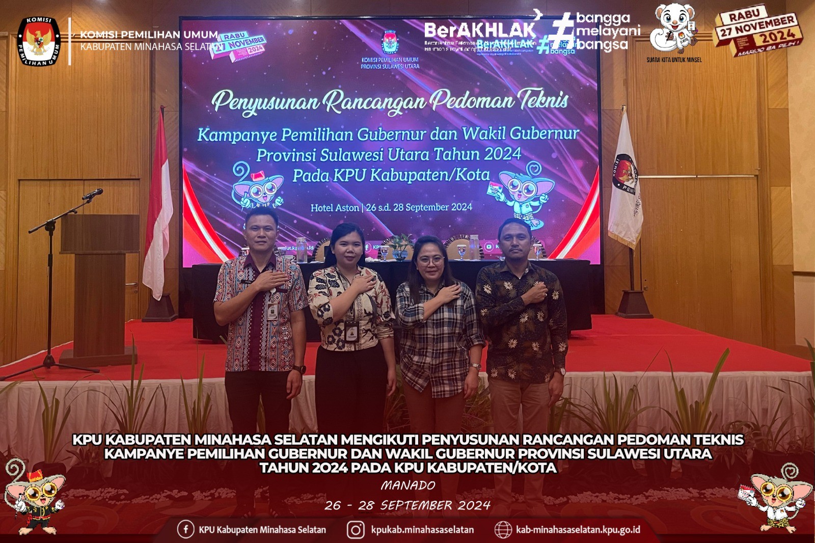 Komisi Pemilihan Umum (KPU) Kabupaten Minahasa Selatan (Minsel) menggelar Penyuluhan Produk Hukum Pilkada Tahun 2024 dan Deklarasi Sahabat JDIH KPU Kabupaten Minahasa Selatan (Minsel). Adapun peserta dalam kegiatan ini adalah Panitia Pemilihan Kecamatan (PPK), Para Camat, Organisasi Masyarakat (Ormas) dan Pers. Kegiatan digelar selama tiga hari 28-30 September 2024 di Novotel Manado Golf Resort and Convention. Ketua KPU Minsel, dalam sambutannya menyampaikan bahwa kegiatan ini dilaksanakan untuk memberi pemahaman kepada seluruh masyarakat di Minsel, terkait dengan produk hukum yang dikeluarkan baik oleh KPU RI, KPU Provinsi Sulawesi Utara (Sulut), dan KPU Minsel. Stakeholder diharapkan dapat berkontribusi menyukseskan pilkada serentak pada tanggal 27 November 2024. Menurutnya, KPU memiliki tanggung jawab besar dalam menyampaikan informasi terkait prosedur dan regulasi pemilihan kepada semua pihak terkait. Penyuluhan ini bertujuan agar masyarakat bisa memiliki pengetahuan dan informasi terkait pilkada secara utuh. Moga menyentil PKPU 13 atau keputusan KPU nomor 1363. Posisi KPU adalah menentukan titik yang nantinya akan dipergunakan oleh pasangan calon untuk kampanye umum, KPU juga bertanggung jawab untuk membuat dan memberikan alat peraga kampanye untuk pasangan calon. “Saya berharap kegiatan penyuluhan ini, kita ikuti dengan baik sehingga kita benar-benar paham terkait produk-produk hukum. Supaya ke depan tidak ada hal-hal yang tidak kita inginkan bersama,”ucapnya. Tomy juga mengingatkan para penyelenggara melaksanakan tugas dan tanggung jawab yang mulia tapi harus merujuk pada UU dan PKPU, Kalau salah melangkah bisa dijerat dengan hukum, kalau ada kesalahan ada konsekuensi hukumnya. “Kalau mau ambil keputusan harus berkoordinasi dengan kami berlima komisioner KPU, supaya Pilkada tahun ini bisa berjalan dengan baik,”kata Moga Ketua Divisi Hukum dan Pengawasan Sriwulan Suot menjelaskan penyuluhan hukum mengundang para camat, organisasi masyarakat dan organisasi adat, juga rekan-rekan pers, agar penyuluhan produk hukum ini tersampaikan kepada masyarakat luas. “Bapak ibu Camat bisa sampaikan kepada jajarannya, rekan-rekan badan ADHOC dengan jajarannya dan masyarakat dan rekan-rekan pers melalui media, kemudian teman-teman organisasi masyarakat juga bisa keteman-teman,”pintanya. "Segala sesuatu yang kami lakukan berdasarkan aturan KPU RI. Jadi sebagai penyelenggara apa yang kami laksanakan sesuai dengan bingkai regulasi yang sudah ditetapkan oleh KPU. Agar diketahui oleh semua yang hadir disaat ini", tutur Wulan. Selanjutnya berturut-turut penyampaian materi oleh Ketua Divisi Teknis Penyelenggaraan, Hanny Porajow terkait dengan Dana Kampanye, kemudian materi oleh Ketua Divisi Sosdiklih, Parmas dan SDM, Fauzan Sirambang yang mengulik terkait Masa Kampanye serta menyosialisasikan Pilkada Ramah Lingkungan yang digagas oleh KPU Sulut. Setelah sambutan dan penyampaian oleh Ketua dan anggota KPU Minsel, dilanjutkan pemaparan materi oleh Ketua Divisi Hukum dan Pengawasan KPU Sulut, Meidy Yafeth Tinangon yang menyampaikan terkait Kerangka Hukum, Difusi Hukum dan Penegakan Hukum Pilkada. Tinangon menyampaikan bahwa KPU dalam menjalankan tahapan Pilkada harus sesuai dengan regulasi yang sudah diatur dalam kerangka hukum, dan seluruh regulasi KPU tersebut tertuang dalam JDIH yang dapat diakses melalui laman website yang ada. Diketahui kegiatan penyuluhan produk hukum ini menghadirkan berbagai Narasumber. Mulai dari Pjs. Bupati Minsel Steven Liow, Kajari Minsel, Kapolres, Ketua Bawaslu hingga akademisi dan praktisi. (*)