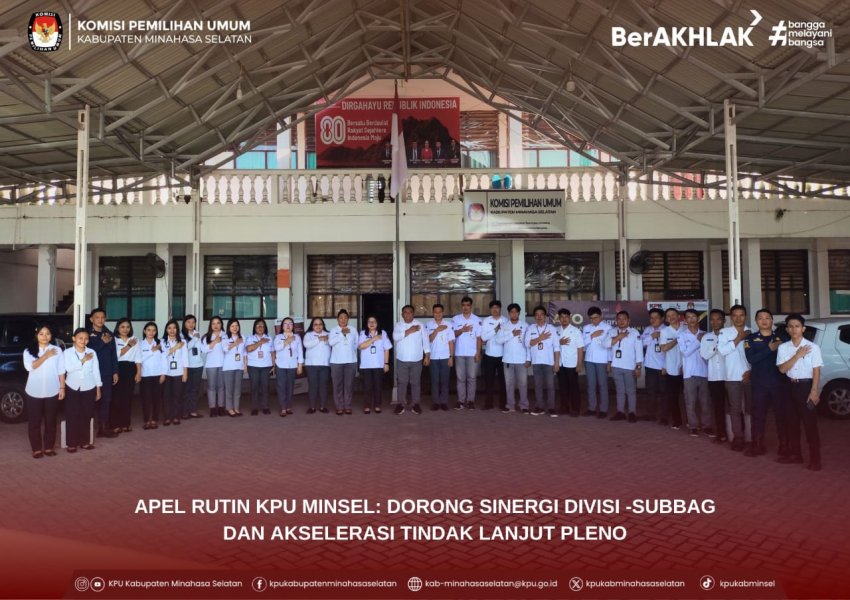 Amurang, 20 November 2025 — Komisi Pemilihan Umum (KPU) Kabupaten Minahasa Selatan menegaskan komitmen kuat dalam mewujudkan penyelenggaraan pemilu yang bersih, transparan, dan bebas dari praktik korupsi melalui kegiatan Sosialisasi Pengendalian Gratifikasi. Kegiatan yang dilaksanakan pada 20 November 2025 ini dipimpin langsung oleh Ketua KPU Minahasa Selatan, Tomy Moga, dan diikuti jajaran komisioner serta seluruh sekretariat KPU.