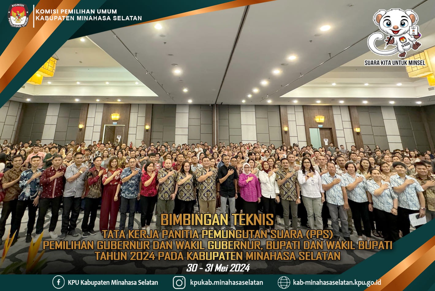 Komisi Pemilihan Umum Kabupaten Minahasa Selatan Melaksanakan Bimbingan Teknis Tata Kerja Panitia Pemungutan Suara Pemilihan Gibernur dan Wakil Gubernur, Bupati dan Wakil Bupati Tahun 2024 Pada Kabupaten Minahasa Selatan 30-31 Mei 2024 di Hotel Mercure.