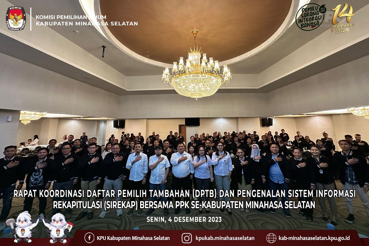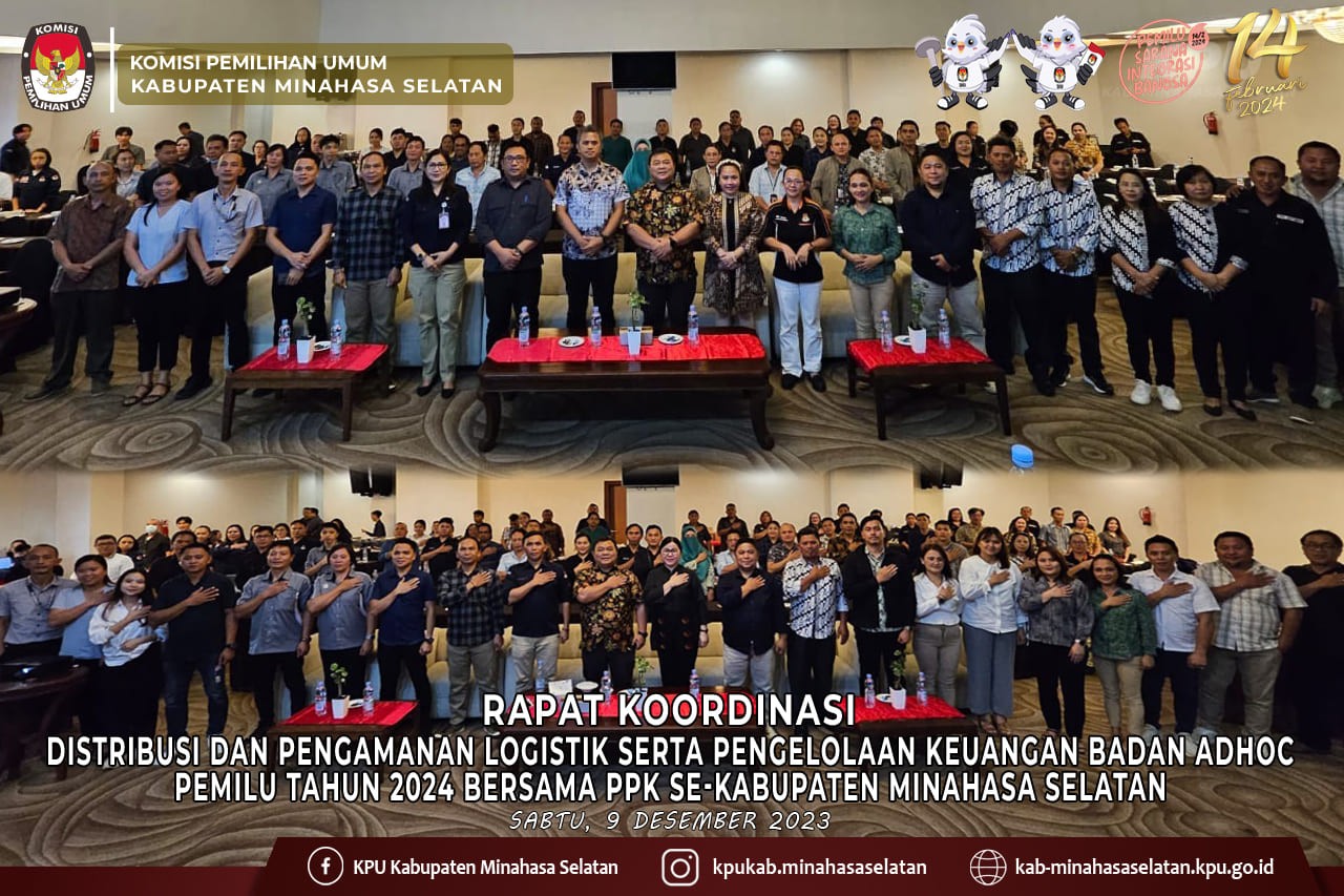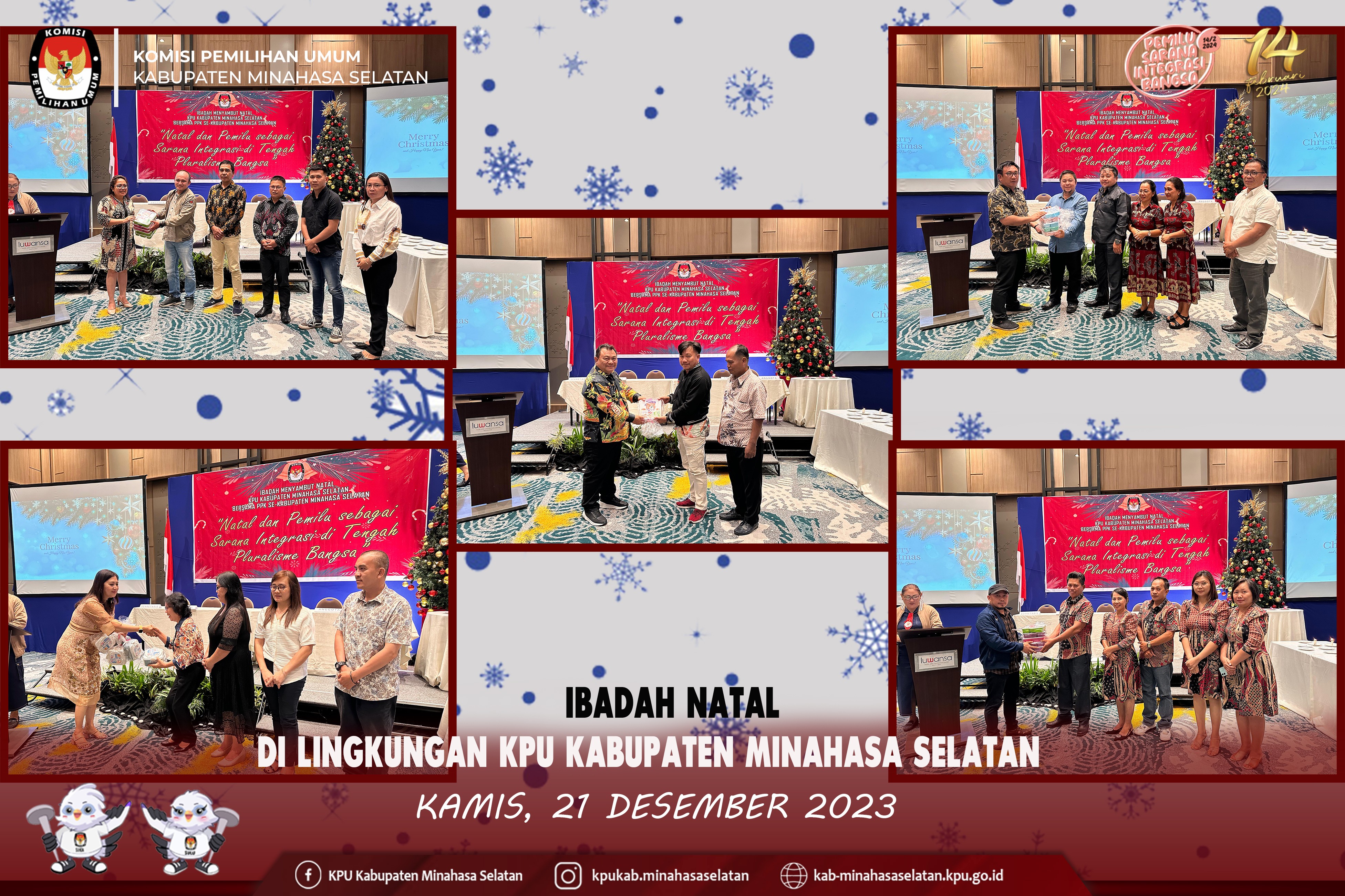 Manado, Pemilihan Umum (Pemilu) 2024 di depan mata. Tahapan demi tahapan dibesut Komisi Pemilihan Umum (KPU). Di tengah kesibukkan menjabarkan tahapan pemilu, KPU Minahasa Selatan menggelar Ibadah Natal. Kali ini, perayaan melibatkan keluarga besar Panitia Pemilihan Kecamatan (PPK). Ibadah dengan mengusung tema “Natal dan Pemilu sebagai Sarana Integrasi di Tengah Pluralisme Bangsa”, dipimpin oleh Pdt. Deysi Maya Pepah, Sth Membawakan sambutan, Ketua KPU Minahasa Selatan Tomy Moga, mengajak seluruh jajaran penyelenggara dan sekretariat yang hadir untuk bersama-sama mengucap syukur. “Karena, dimomen ini kita dapat merayakan Natal Yesus Kristus di tengah kepadatan tahapan yang sementara berjalan. Syukur, kita boleh bersama-sama dalam ibadah Natal ini,” ungkap Moga didampingi Anggota KPU Minahasa Selatan Sriwulan J.C. Suot, Hanny J. Porajow, Fauzan Sirambang, Fadly Munaiseche dan Sekretaris Lani L.A. Alou beserta Pejabat Struktural KPU Minahasa Selatan.
