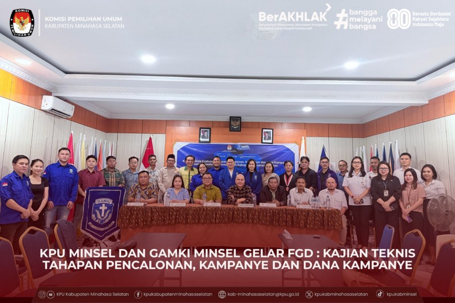 Amurang, Kamis 28 Agustus 2025 – Komisi Pemilihan Umum (KPU) Kabupaten Minahasa Selatan bersama Gerakan Angkatan Muda Kristen Indonesia (GAMKI) Kabupaten Minahasa Selatan melaksanakan Focus Group Discussion (FGD) bertema Kajian Teknis Tahapan Pencalonan, Kampanye, dan Dana Kampanye yang bertempat di Aula KPU Kabupaten Minahasa Selatan. Kegiatan diawali dengan sambutan oleh Ketua GAMKI Minahasa Selatan, Andre Rumopa, yang menegaskan bahwa pemuda harus mengambil bagian dalam mengawal demokrasi yang bermartabat. Selanjutnya, Ketua KPU Kabupaten Minahasa Selatan, Tomy Moga, menyampaikan sambutan sekaligus membuka kegiatan secara resmi. Dalam arahannya, ia menekankan pentingnya keterlibatan pemuda dan organisasi kepemudaan dalam memperkuat partisipasi masyarakat serta memastikan setiap tahapan pemilu dan pemilihan berjalan dengan baik dan sesuai dengan asas pemilu. Moga juga mengapresiasi kaum muda di Kabupaten Minahasa Selatan, dalam hal ini GAMKI Minahasa Selatan yang sudah berinisiatif untuk berkolaborasi dengan KPU Kabupaten Minahasa Selatan dalam melaksanakan FGD. Diskusi ini menghadirkan tiga pemantik, yaitu Meidy Y. Tinangon, Anggota KPU Sulawesi Utara Divisi Hukum dan Pengawasan; La Ode Irwandi Bulama, Anggota Bawaslu Minahasa Selatan; dan Hanny J. Porajow, Anggota KPU Minahasa Selatan Divisi Teknis Penyelenggaraan. Ketiga pemantik memberikan perspektif yang komprehensif, mulai dari sisi keadilan elektoral, teknis, hingga pengawasan, sehingga peserta FGD mendapatkan gambaran utuh mengenai tantangan dan solusi yang perlu diperhatikan dalam pelaksanaan tahapan pemilu mendatang, khususnya tahapan pencalonan, kampanye dan dana kampanye. FGD ini dihadiri pula oleh para Anggota KPU Kabupaten Minahasa Selatan, Sekretaris dan jajaran Sekretariat KPU Kabupaten Minahasa Selatan, Pengurus dan Anggota DPC GAMKI Kabupaten Minahasa Selatan, perwakilan Organisasi Kepemudaan (OKP) di Minahasa Selatan, serta Pemuda lintas gereja. Kehadiran berbagai unsur ini menunjukkan bahwa penyelenggaraan pemilu bukan hanya tanggung jawab para penyelenggara pemilu, tetapi juga membutuhkan partisipasi aktif masyarakat, terutama kaum muda. Melalui FGD ini, KPU Kabupaten Minahasa Selatan bersama GAMKI Kabupaten Minahasa Selatan berharap tercipta ruang diskusi yang konstruktif, sekaligus memperkuat komitmen bersama untuk menghadirkan pemilu yang transparan, akuntabel, dan berintegritas.
