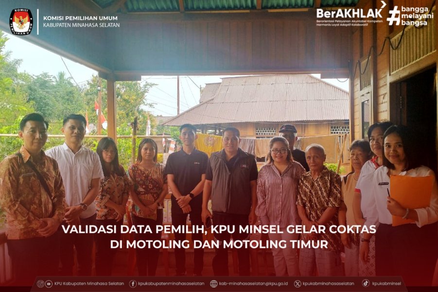 Amurang, 7 Agustus 2025 — Komisi Pemilihan Umum (KPU) Kabupaten Minahasa Selatan melaksanakan kegiatan Pencocokan dan Penelitian Terbatas (Coktas) di Kecamatan Motoling dan Motoling Timur sebagai bagian dari upaya menjaga dan memastikan kualitas data pemilih yang akurat, mutakhir, dan komprehensif. Kegiatan ini dipimpin langsung oleh Anggota KPU Kabupaten Minahasa Selatan Divisi Hukum dan Pengawasan, Sriwulan Suot, didampingi oleh Kepala Subbagian Teknis Penyelenggaraan Pemilu, Partisipasi dan Hubungan Masyarakat (TPP dan Parhubmas), Stenli F. Kimbal, serta Staf Sekretariat KPU Minahasa Selatan. Coktas ini dilaksanakan dengan melakukan kunjungan langsung ke sejumlah rumah warga, guna memastikan kesesuaian data identitas, domisili, serta status kependudukan mereka. Pengawasan terhadap kegiatan ini turut dilakukan secara langsung oleh Bawaslu Kabupaten Minahasa Selatan, yang diwakili oleh Anggota Bawaslu, Franny Sengkey, bersama jajaran Sekretariat Bawaslu Minsel. Keterlibatan Bawaslu dalam pengawasan Coktas menunjukkan komitmen bersama antar lembaga penyelenggara pemilu dalam mewujudkan integritas dan akuntabilitas proses demokrasi di daerah. Menurut Wulan, pelaksanaan Coktas merupakan bagian dari ikhtiar KPU untuk melakukan validasi internal terhadap data pemilih. “Langkah ini penting sebagai bagian dari pemutakhiran data berkelanjutan, serta untuk mendeteksi potensi ketidaksesuaian data yang bisa berdampak pada hak pilih warga,” jelasnya. Ia juga menegaskan bahwa keterbukaan dan kolaborasi dengan pengawas pemilu menjadi faktor kunci dalam menjamin akurasi dan keabsahan proses Coktas. Kegiatan serupa akan terus dilakukan secara bertahap di wilayah-wilayah lainnya di Kabupaten Minahasa Selatan sebagai bagian dari konsolidasi data pemilih menuju tahapan Pemilu dan Pemilihan selanjutnya.