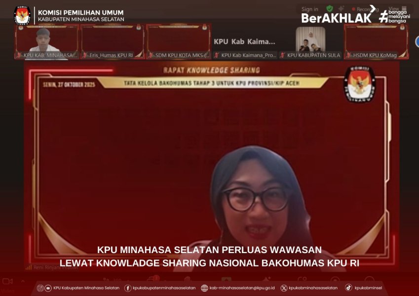 Amurang - Sekretariat Komisi Pemilihan Umum (KPU) Kabupaten Minahasa Selatan mengikuti Rapat Koordinasi (Rakor) Sekretariat KPU Sulawesi Utara yang digelar secara daring pada Senin (27/10/2025). Kegiatan ini menjadi forum strategis untuk menyelaraskan pelaksanaan program dan kegiatan sekretariat antara KPU Provinsi dan KPU Kabupaten/Kota di seluruh Sulawesi Utara. Penguatan Koordinasi dan Komunikasi Internal Dalam arahannya, Sekretaris KPU Sulawesi Utara, Meidy Malonda, menegaskan pentingnya menjaga soliditas dan komunikasi yang efektif antar jajaran sekretariat. “Sekretariat KPU harus tetap solid dalam menyikapi berbagai permintaan data, baik dari internal maupun eksternal. Komunikasi harus terjalin baik, baik secara horizontal antar satuan kerja maupun vertikal dengan KPU RI,” ujar Meidy. Ia menekankan bahwa ketepatan dan keterpaduan informasi antar unit kerja menjadi kunci dalam menjaga kepercayaan publik dan mendukung kelancaran tahapan kepemiluan. Sinkronisasi Program dan Konsistensi Pelaksanaan Para Kepala Bagian di Sekretariat KPU Sulut - Carles Worotitjan, Winda Tulangow, dan Rudy Lalonsang - dalam pemaparannya menyoroti pentingnya penyamaan persepsi, konsistensi pelaksanaan program, serta koordinasi lintas tingkatan. Langkah tersebut diharapkan dapat meningkatkan efektivitas kegiatan sekretariat serta memperkuat fungsi kelembagaan dalam mendukung kinerja KPU secara menyeluruh. Komitmen KPU Minahasa Selatan Dari KPU Kabupaten Minahasa Selatan, kegiatan ini diikuti oleh Sekretaris KPU Minahasa Selatan, Lani L.A. Alou. Partisipasi ini menjadi bentuk komitmen KPU Minahasa Selatan dalam memastikan setiap kebijakan dan program sekretariat selaras dengan arah kebijakan KPU Provinsi dan KPU RI, sekaligus memperkuat tata kelola organisasi yang profesional, akuntabel, dan berintegritas. Sinergi untuk Kelembagaan yang Adaptif Rakor ini juga diikuti oleh Pejabat Fungsional Ahli Madya, para Kepala Subbagian, serta jajaran sekretariat KPU Sulut. Forum ini diharapkan menjadi sarana memperkuat sinergi kelembagaan dan menumbuhkan budaya kerja yang adaptif, responsif, serta berorientasi pada hasil.