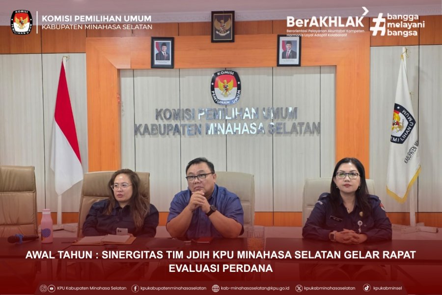 Amurang – Komisi Pemilihan Umum (KPU) Kabupaten Minahasa Selatan menggelar apel pagi rutin pada Senin, 12 Januari 2026, sebagai bentuk penguatan disiplin dan konsolidasi internal dalam mengawali aktivitas kerja pekan ini. Apel pagi tersebut dipimpin oleh Kasubbag Parhubmas & SDM, Juwita Rosari Kasenda, selaku pemimpin apel, serta Hanny Porajow, Anggota KPU Kabupaten Minahasa Selatan, yang bertindak sebagai pembina apel. Kegiatan ini diikuti oleh Sekretaris serta para Kepala Subbagian (Kasubbag) beserta seluruh staf sekretariat KPU Kabupaten Minahasa Selatan. Dalam amanatnya, pembina apel menekankan pentingnya pemahaman dan pelaksanaan tugas-tugas KPU Kabupaten Minahasa Selatan yang selaras dengan Rencana Strategis Komisi Pemilihan Umum Tahun 2026 yang tertuang dalam PKPU Nomor 5 Tahun 2026. Disampaikan bahwa terdapat tiga tugas pokok yang menjadi fokus kerja utama, yakni Pendidikan Pemilih Berkelanjutan, Pemutakhiran Data Pemilih Berkelanjutan, serta Penguatan dan Integrasi Sistem Informasi Pemilu. Menurutnya, ketiga fokus tersebut merupakan fondasi penting dalam menjaga kualitas demokrasi, meningkatkan partisipasi pemilih, serta memastikan akurasi data dan transparansi penyelenggaraan pemilu. Oleh karena itu, seluruh jajaran diharapkan dapat bekerja secara profesional, terkoordinasi, dan berorientasi pada pelayanan publik. Apel pagi berlangsung dengan tertib dan khidmat, serta menjadi momentum penguatan komitmen bersama seluruh jajaran KPU Kabupaten Minahasa Selatan dalam menjalankan tugas dan tanggung jawab kelembagaan secara optimal di tahun 2026.
