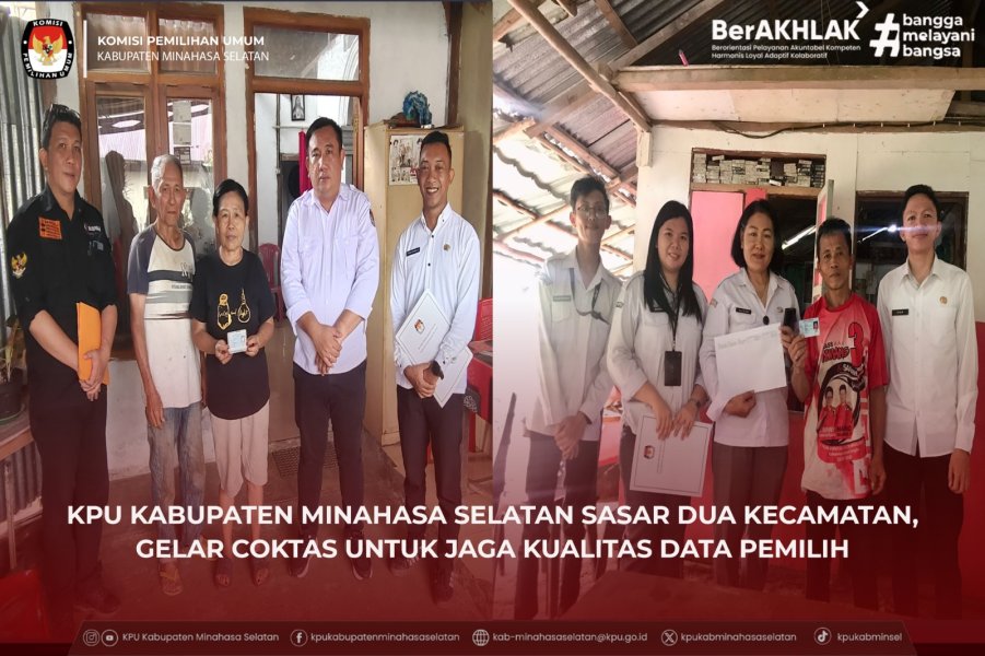 Amurang, 4 Agustus 2025 - Komisi Pemilihan Umum (KPU) Kabupaten Minahasa Selatan kembali menunjukkan komitmennya terhadap akurasi data pemilih dengan melaksanakan kegiatan Pencocokan dan Penelitian Terbatas (Coktas) di Kecamatan Amurang Barat dan Tatapaan. Kegiatan ini menyasar sejumlah pemilih yang terindikasi mengalami perubahan status kependudukan, seperti pindah domisili, meninggal dunia, atau terdaftar ganda dalam Daftar Pemilih. Tahapan pelaksanaan Coktas diawali dengan koordinasi intensif bersama Relawan Pemutakhiran Data Pemilih Berkelanjutan (PDPB), dilanjutkan dengan kunjungan ke kantor desa dan kelurahan setempat untuk memastikan dukungan data dan informasi yang valid. Selanjutnya, tim lapangan KPU melakukan verifikasi langsung ke rumah-rumah warga secara door to door guna memperoleh kepastian faktual atas status kependudukan pemilih yang memerlukan verifikasi ulang. Kegiatan Coktas ini merupakan bagian penting dari pemeliharaan Data Pemilih Berkelanjutan (PDPB) pasca Pemilu dan Pilkada Serentak Tahun 2024. Melalui langkah ini, KPU Minahasa Selatan menegaskan komitmennya dalam menjaga daftar pemilih yang akurat, mutakhir, dan kredibel—sebagai fondasi utama penyelenggaraan pemilu yang demokratis dan berintegritas. Pelaksanaan Coktas akan terus berlanjut di kecamatan-kecamatan lainnya di wilayah Kabupaten Minahasa Selatan. Setiap tim pelaksana akan didampingi langsung oleh para Komisioner KPU sebagai Koordinator Wilayah, guna memastikan pelaksanaan berjalan optimal dan sesuai dengan ketentuan.