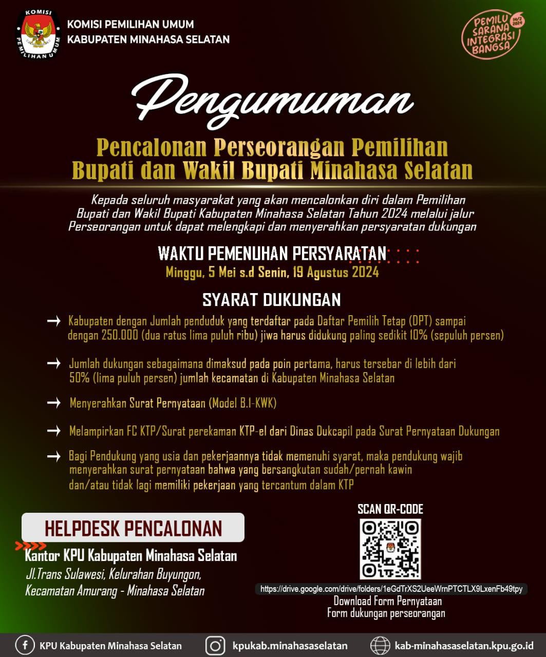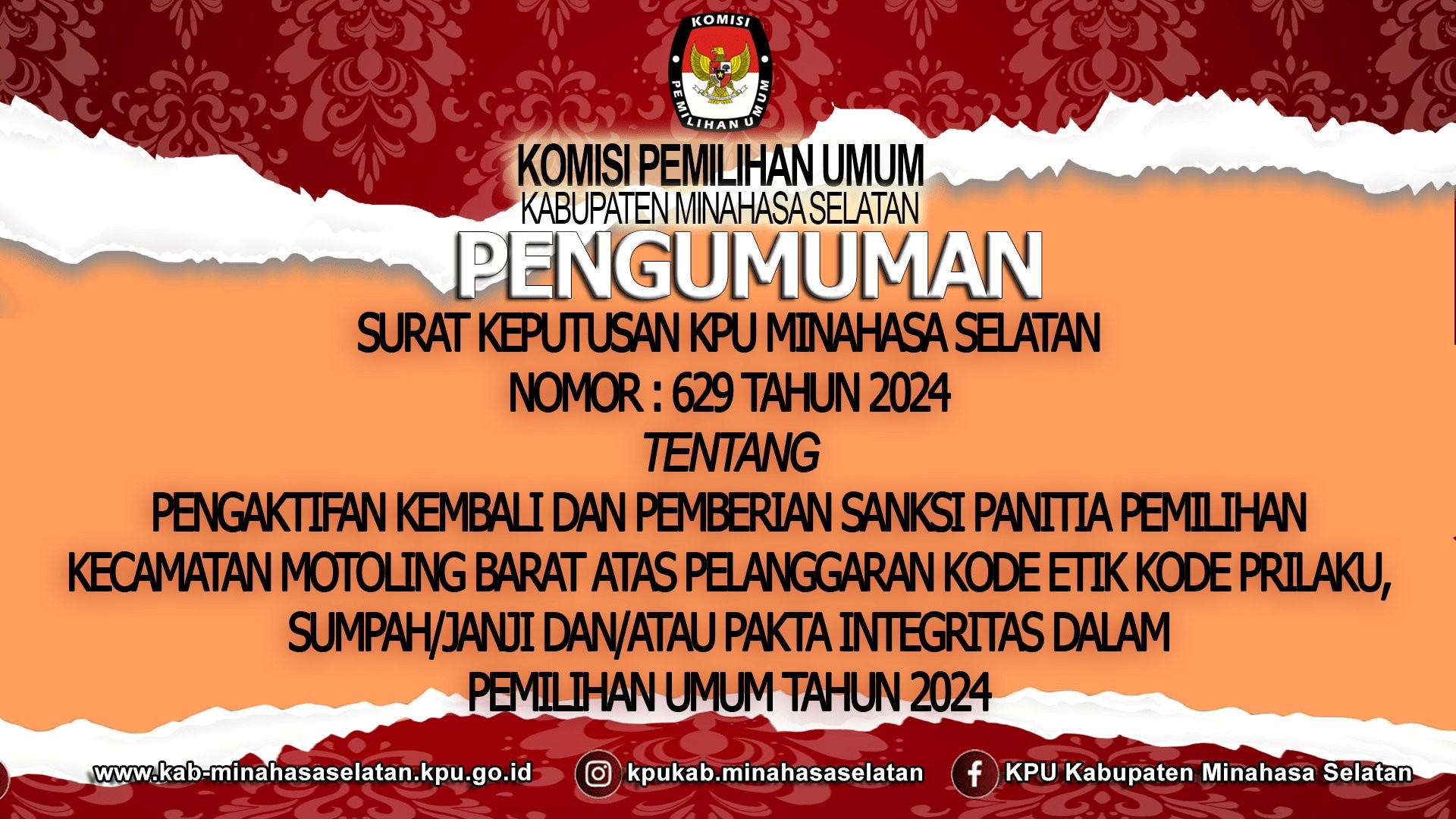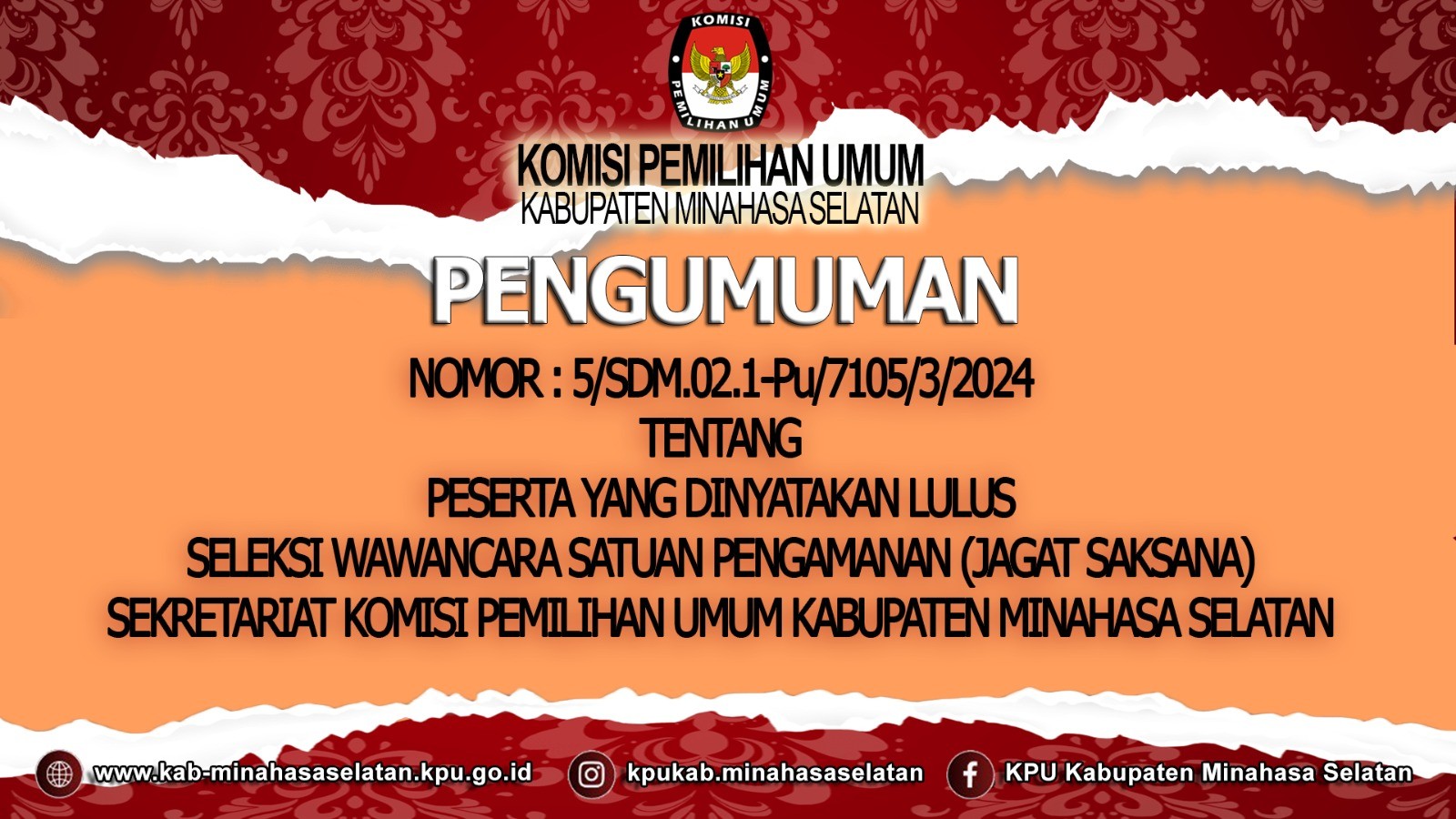 Komisi Pemilihan Umum Kabupaten Minahasa Selatan mengumumkan Rekapitulasi Hasil Penghitungan Perolehan Suara Pemilu Presiden dan Wakil Presiden, Anggota DPR, DPD, DPRD Provinsi, dan DPRD Kabupaten Minahasa Selatan Dalam Pemilihan Umum Tahun 2024.