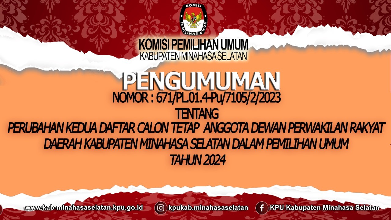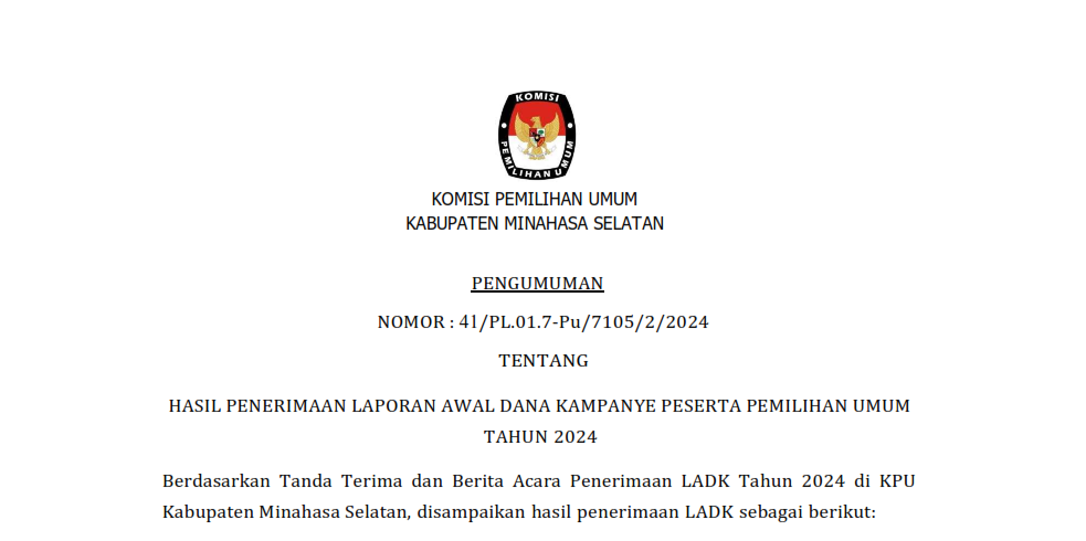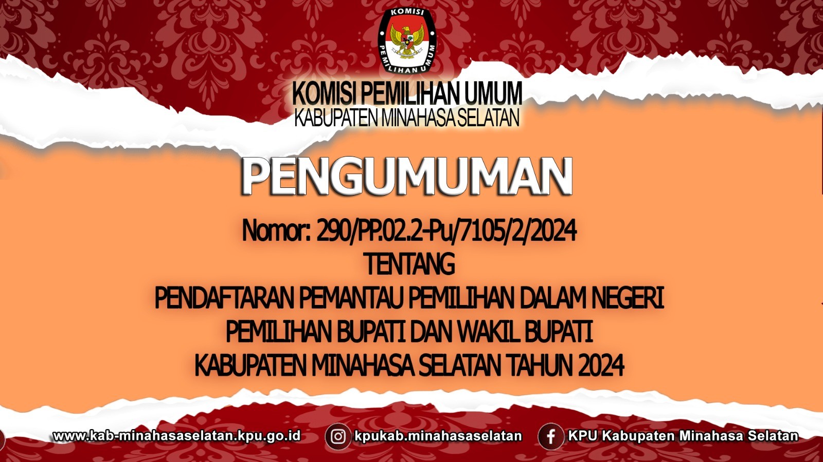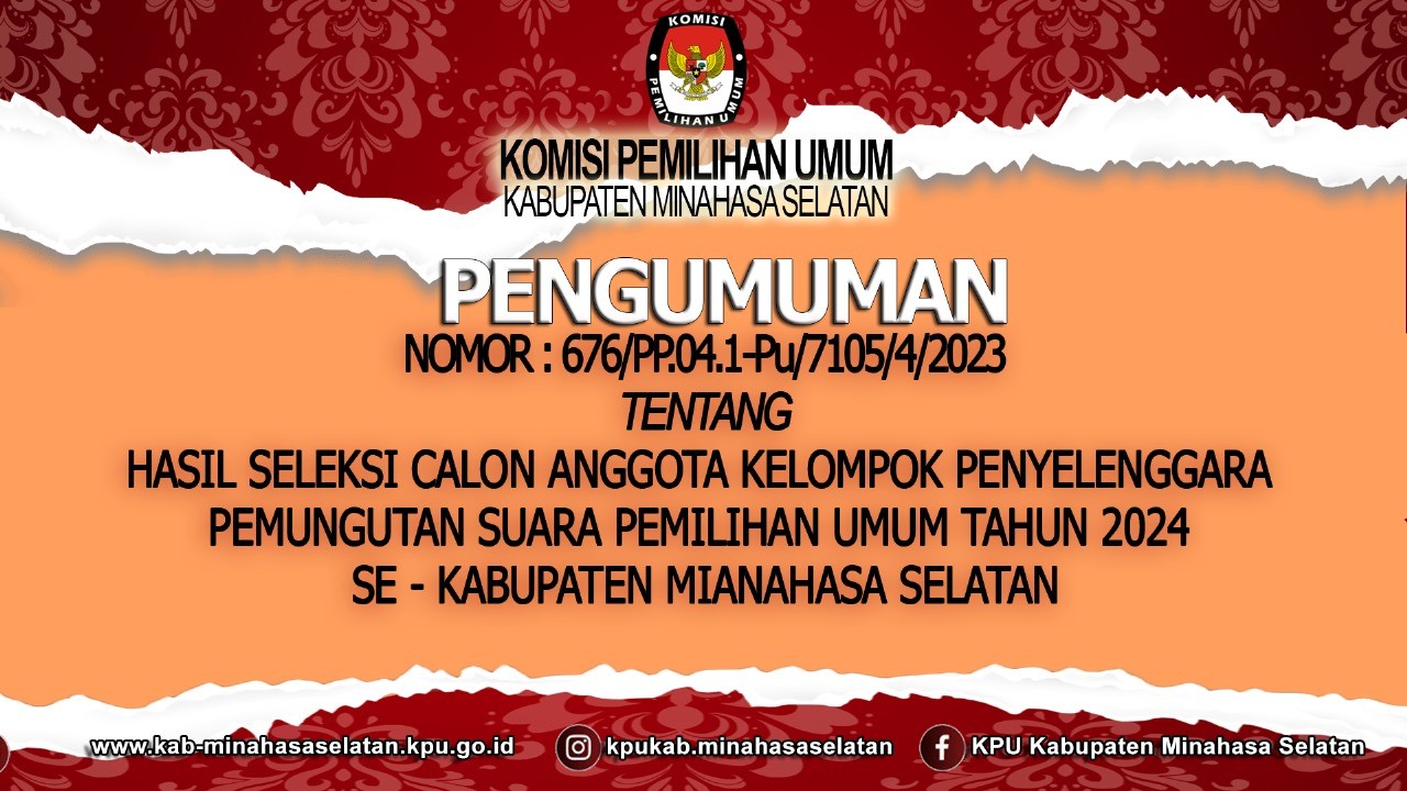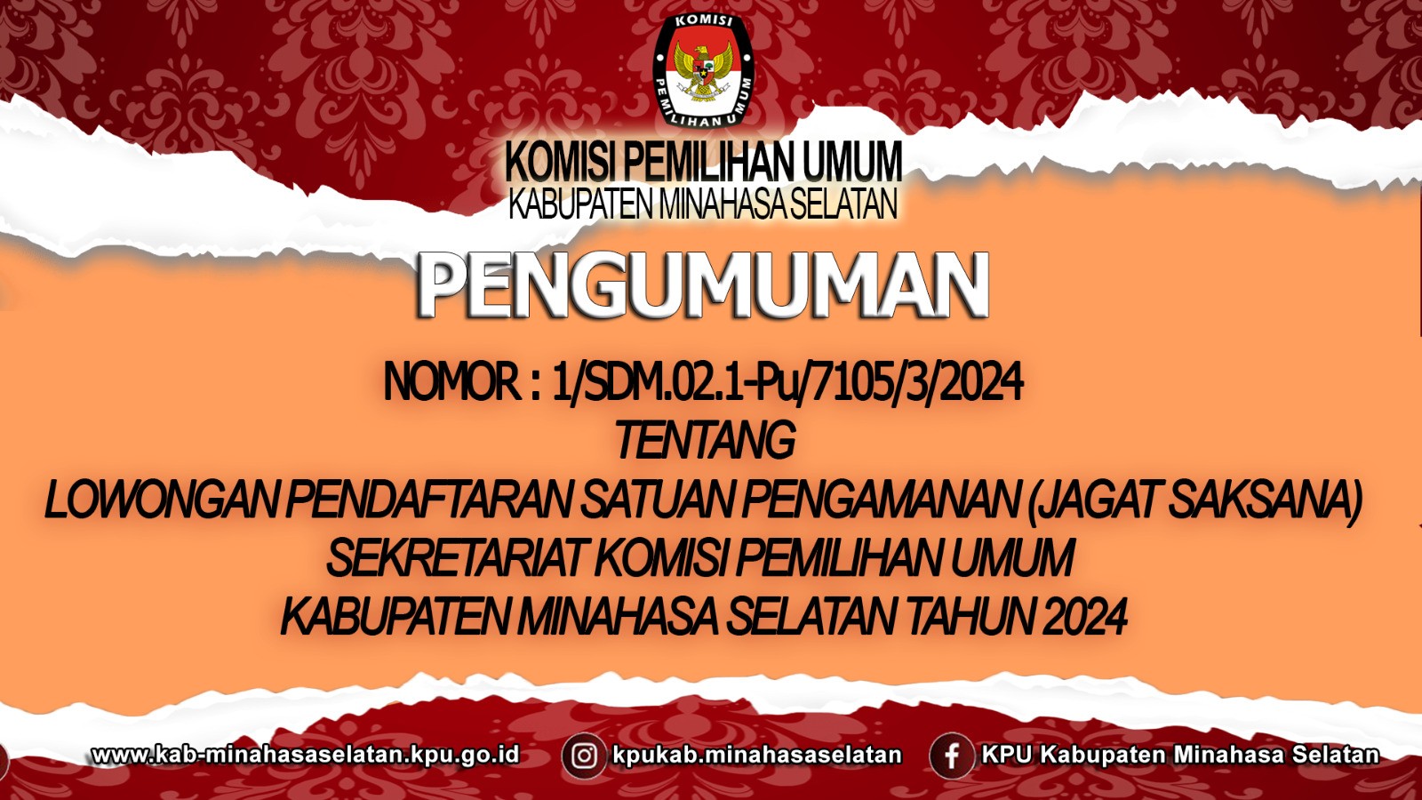 Sekretaris Komisi Pemilihan Umum Kabupaten Minahasa Selatan memberi kesempatan kepada putraputri terbaik bangsa untuk menjadi Satuan Pengamanan (Jagat Saksana) pada Sekretariat KPU Kabupaten Minahasa Selatan Tahun Anggaran 2024, dengan ketentuan sebagai berikut :